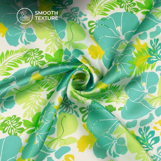 Buy Folk Floral Digital Print Japan Satin Fabric Online - Traditional Print Buy Folk Floral Digital Print Japan Satin Fabric Online - Traditional Print