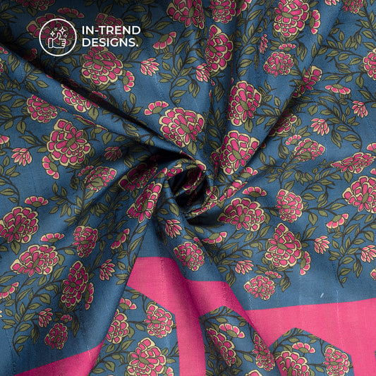Vintage Pushp – Classic Floral Digital Print Art Tusser Silk Fabric Vintage Pushp – Classic Floral Digital Print Art Tusser Silk Fabric