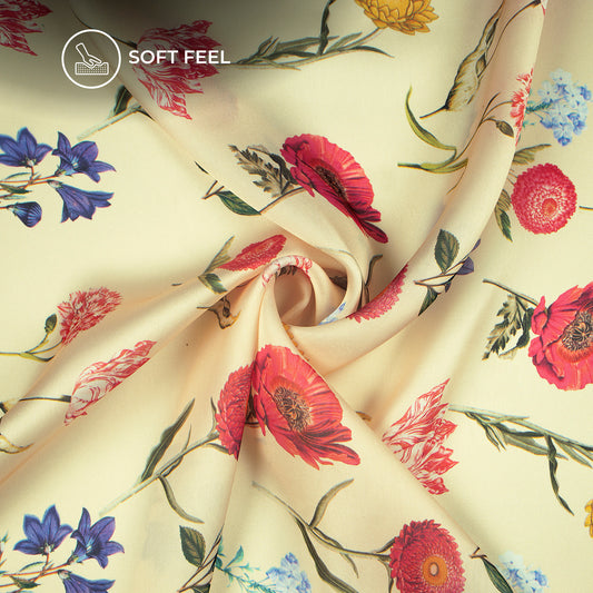 Beige Floral Digital Print Premium Swiss Linen Fabric Beige Floral Digital Print Premium Swiss Linen Fabric
