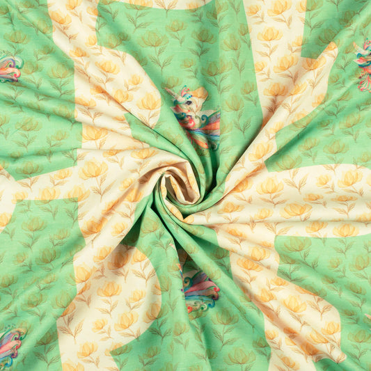 -50% offCream And Fern Green Floral Pattern Digital Print Twill Fabric (Width 56 Inches) Cream And Fern Green Floral Pattern Digital Print Twill Fabric (Width 56 Inches)