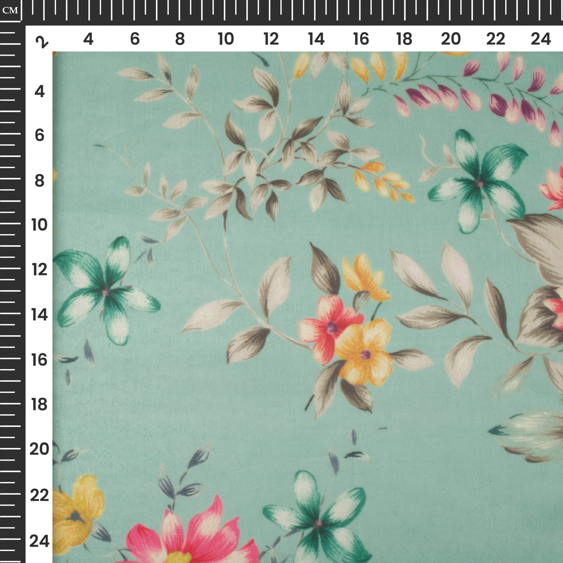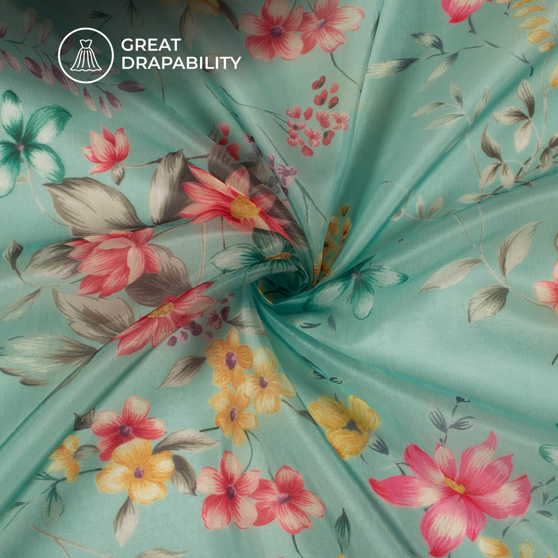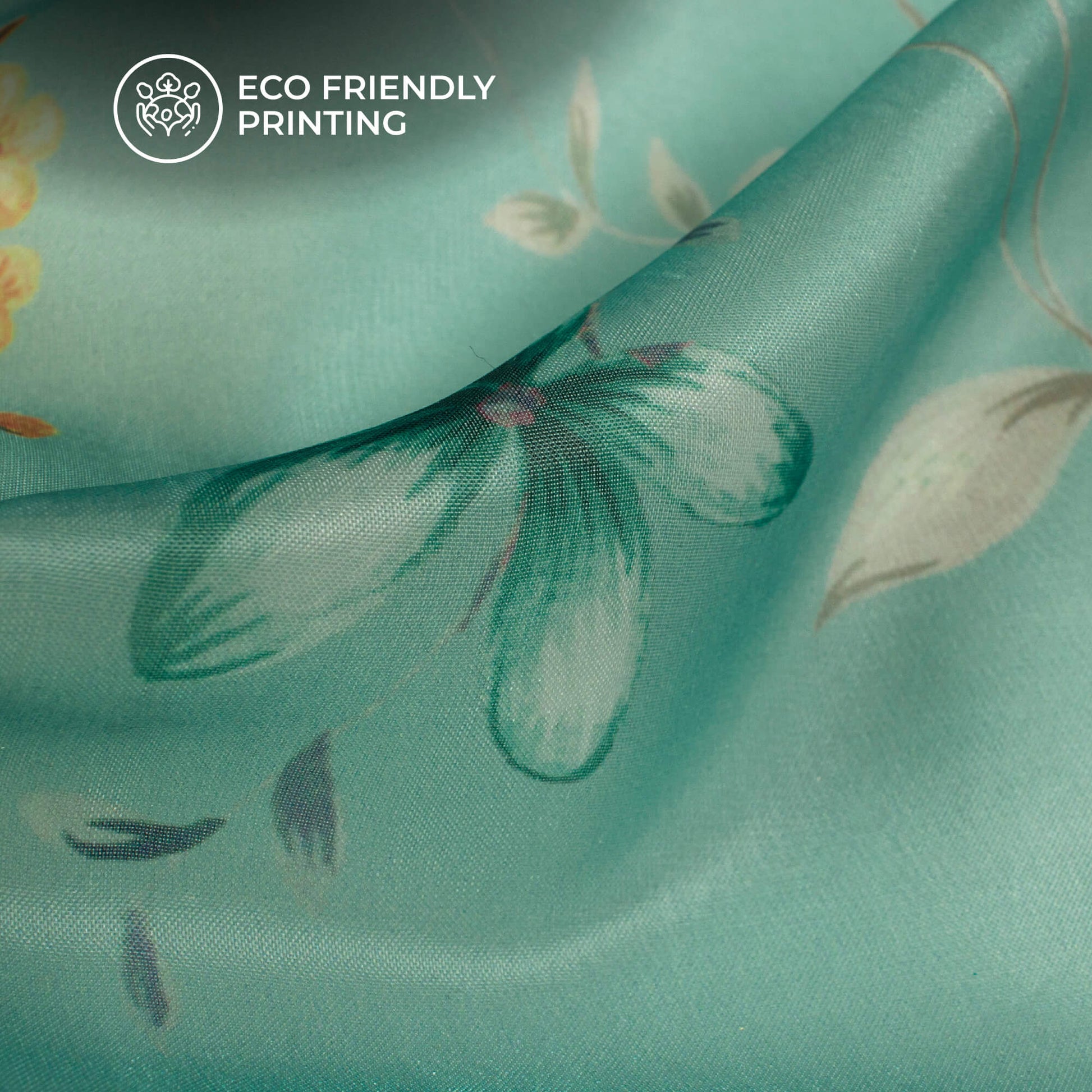 Pale Blue And Golden Yellow Floral Pure Organza Fabric
