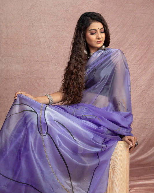 -25% offMauve Purple And Pink Floral Pattern Organza Saree With Tassles Mauve Purple And Pink Floral Pattern Organza Saree With Tassles