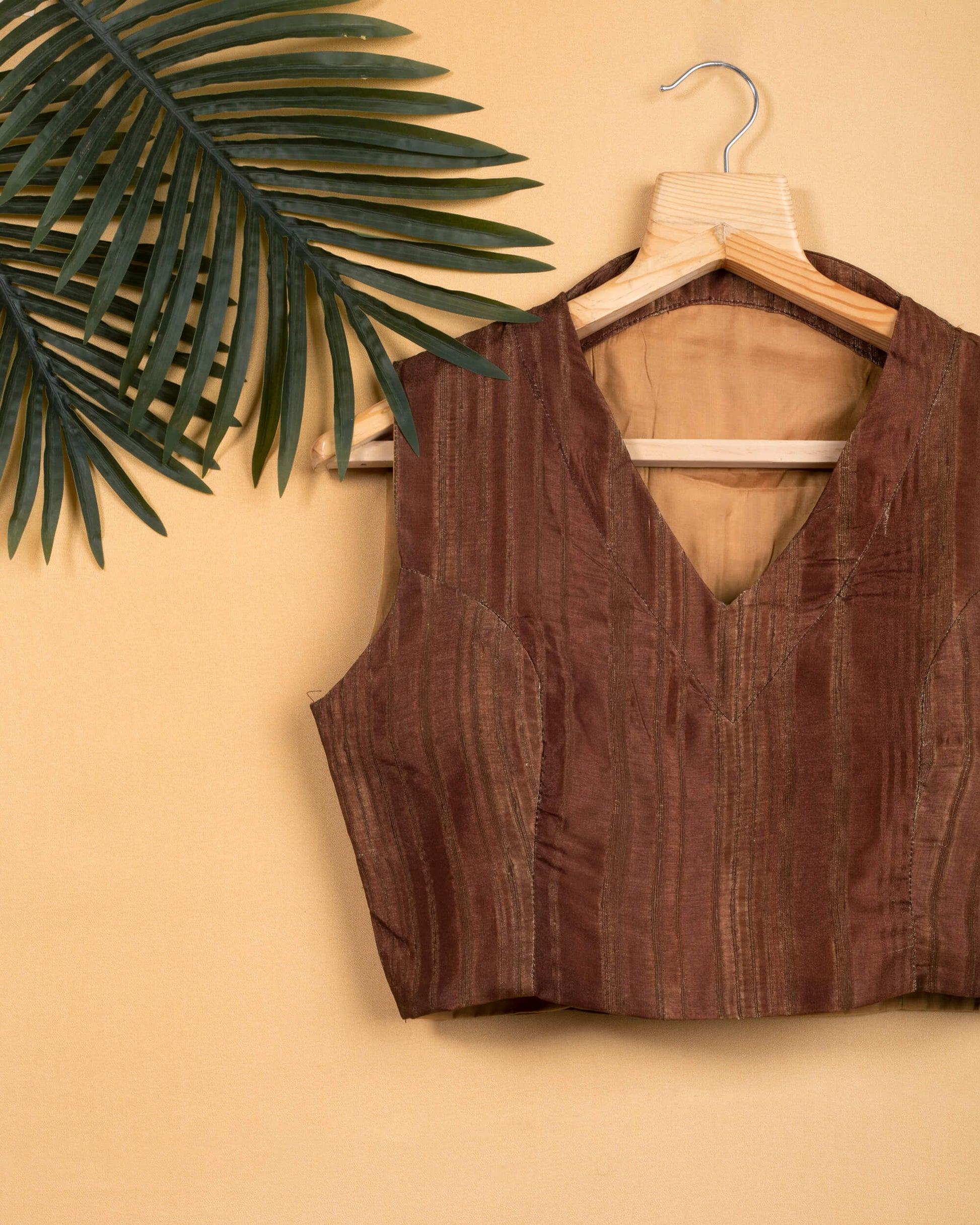 Heritage Art Silk blouse looks astonishing and soothing to the eyes. It features V-neckline and is sleeveless. The fabric is soft, smooth, and has good drapability. Suit this blouse with a saree and arrive in style.