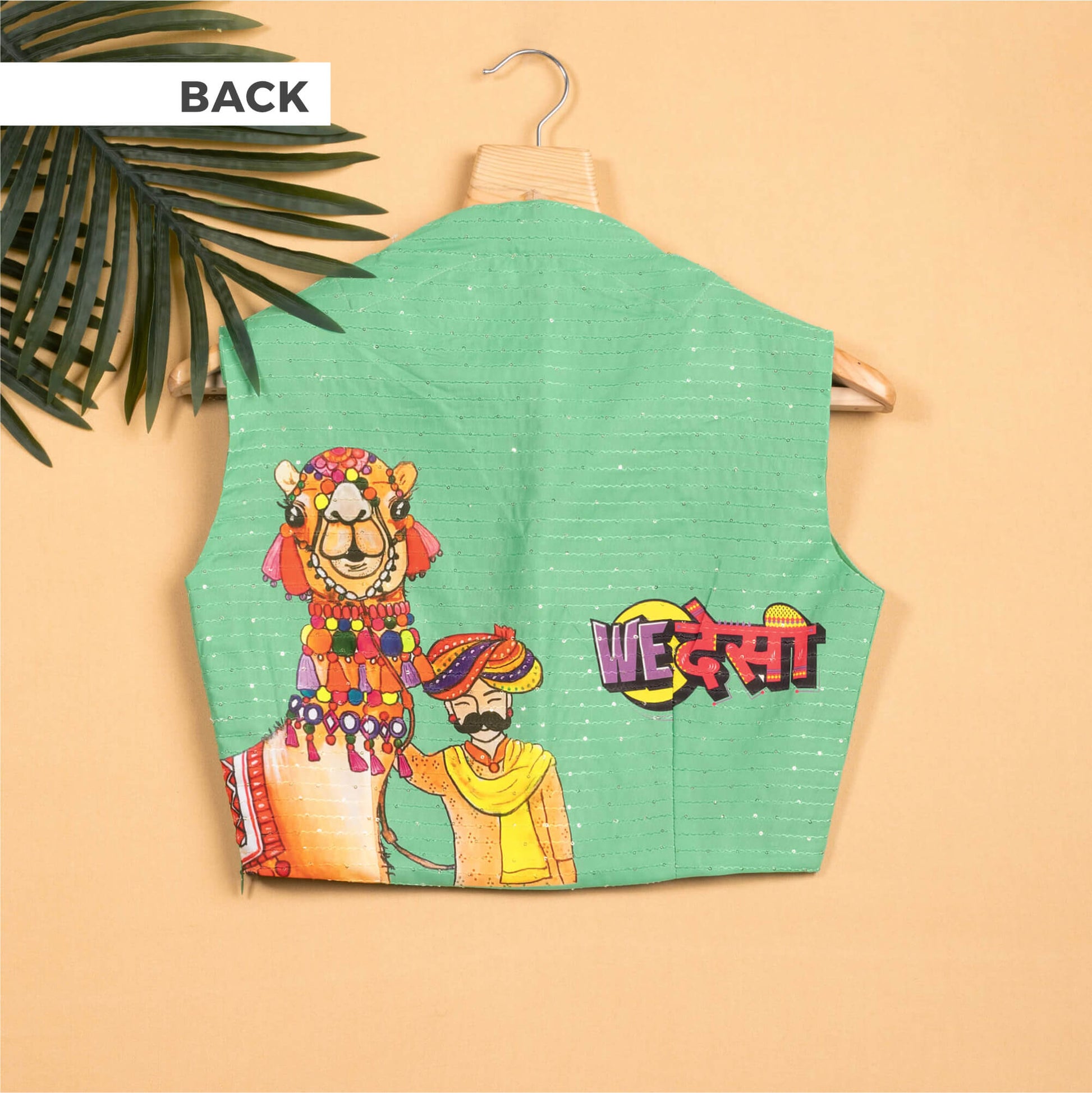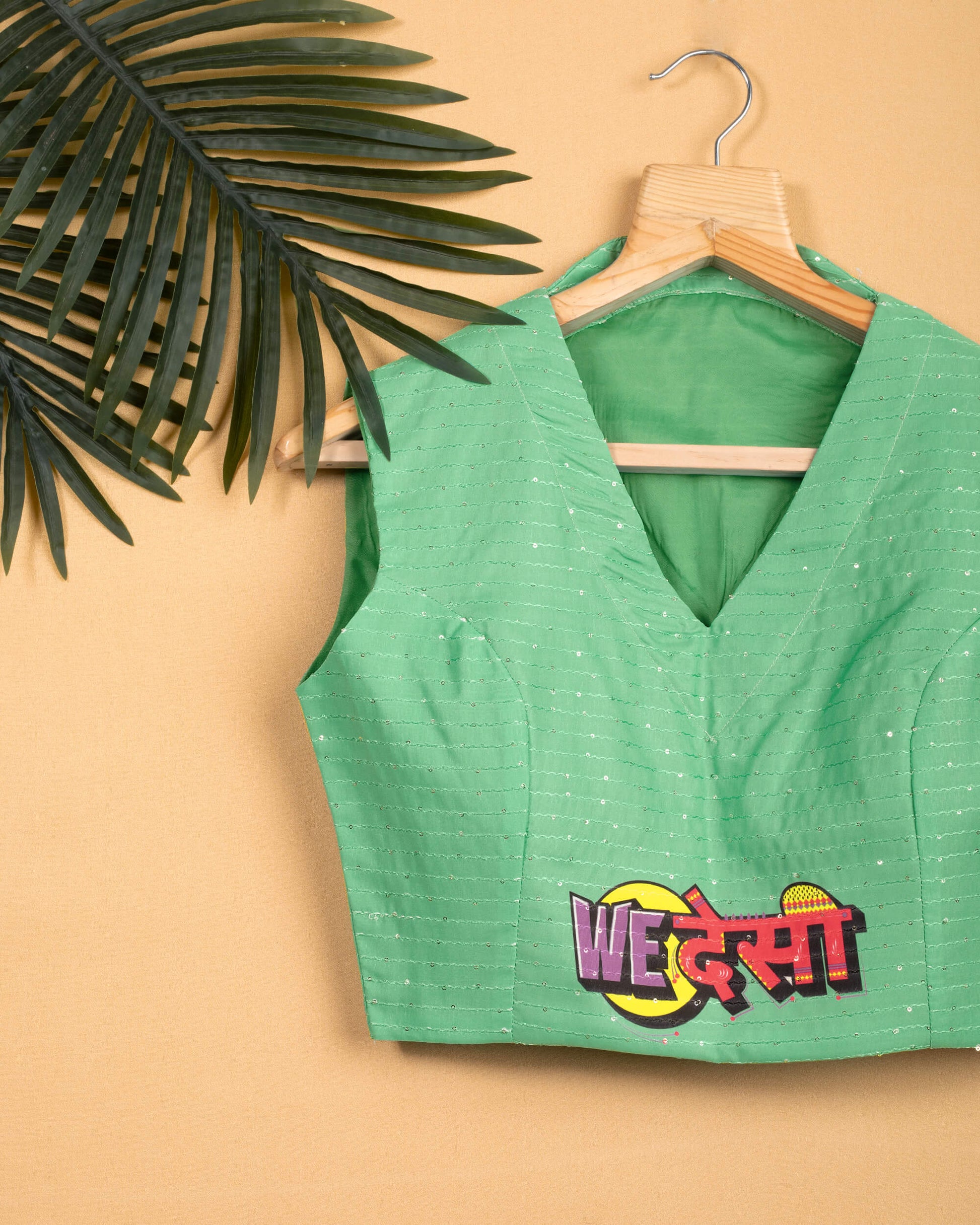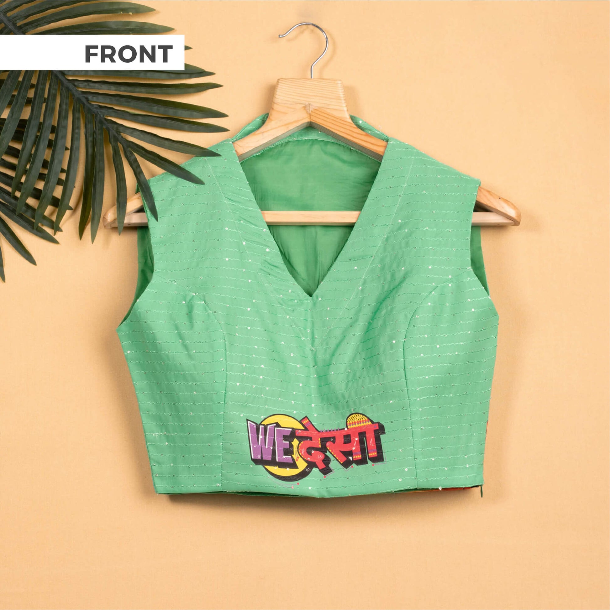 Butter Crepe Blouse with Quirky print looks astonishing and soothing to the eyes. It features V-neckline and is sleeveless. The fabric is soft, smooth, and has good drapability. Suit this blouse with a saree and arrive in style.