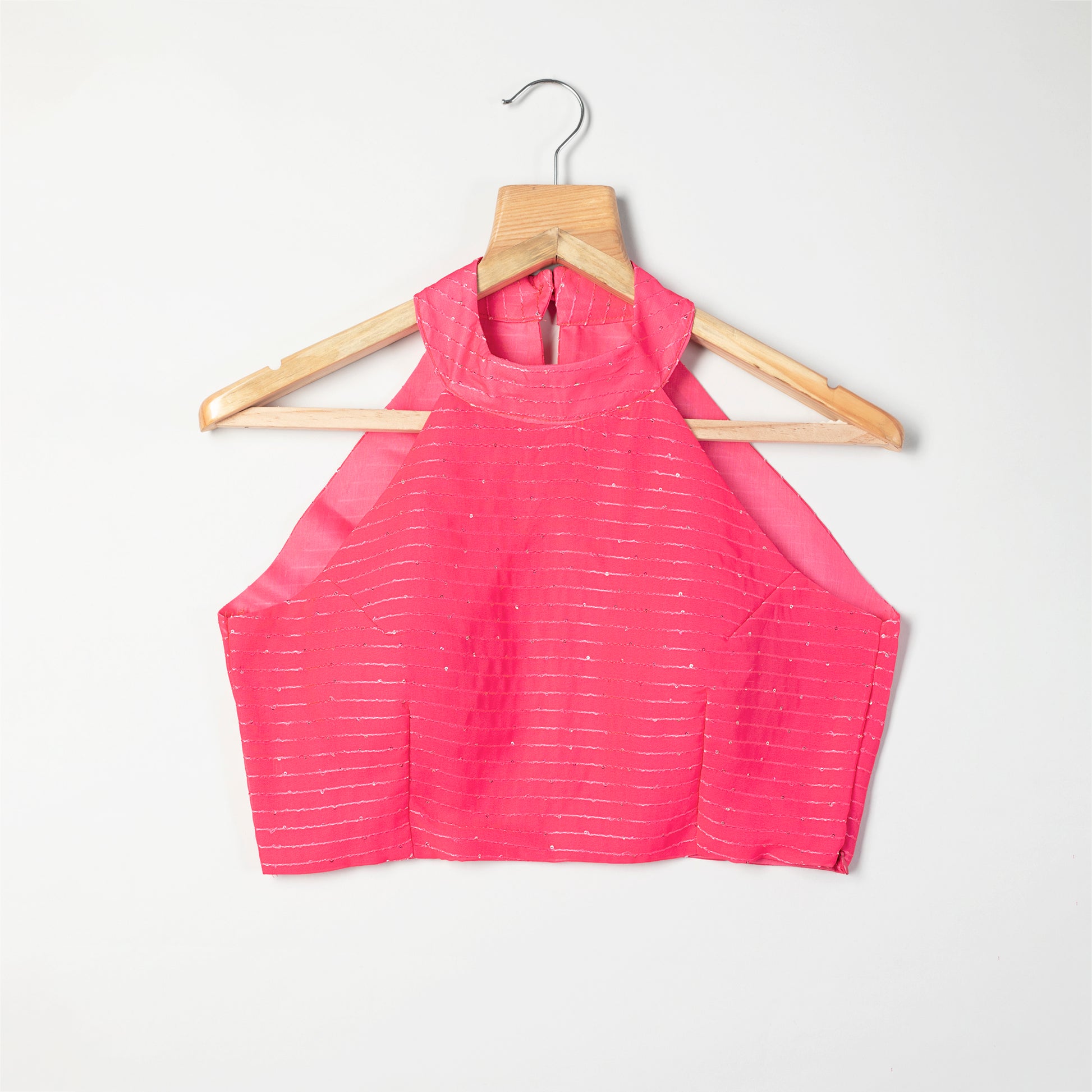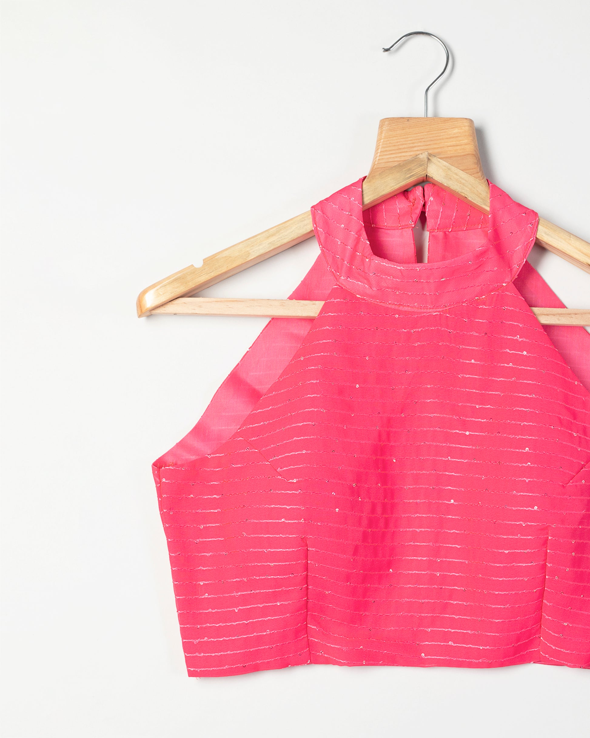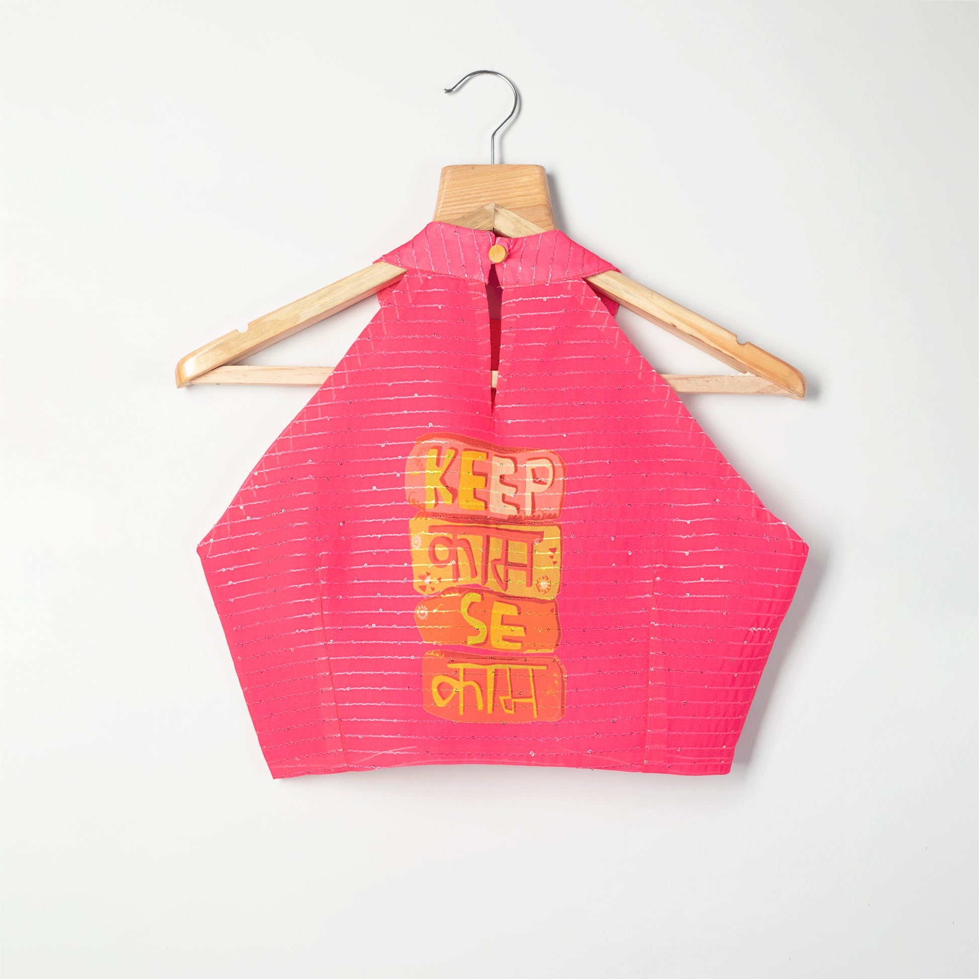 Quirky Printed Sequins Embroidery Halter Neck Blouse