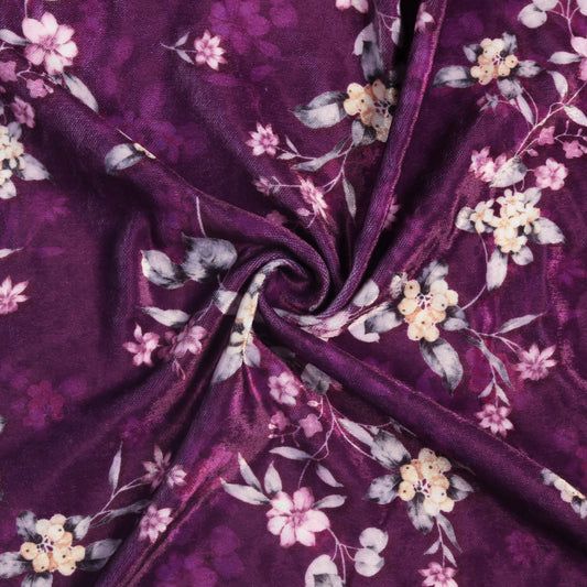 Wine Purple And Peach Floral Pattern Digital Print Premium Velvet Fabric Wine Purple And Peach Floral Pattern Digital Print Premium Velvet Fabric