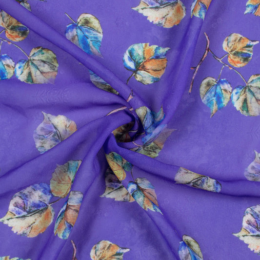 Wine Purple And Taffy Pink Leaf Pattern Digital Print Chiffon Fabric Wine Purple And Taffy Pink Leaf Pattern Digital Print Chiffon Fabric