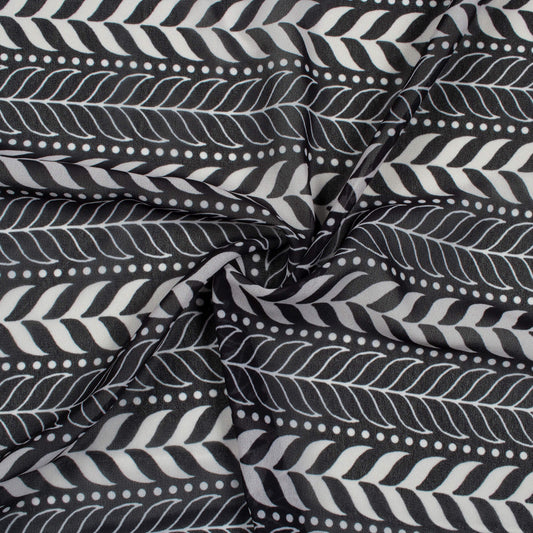 -10% offBlack And Snow White Abstract Pattern Digital Print Georgette Fabric Black And Snow White Abstract Pattern Digital Print Georgette Fabric
