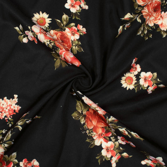 Black And Chilli Red Floral Pattern Digital Print Ultra Premium Butter Crepe Fabric Black And Chilli Red Floral Pattern Digital Print Ultra Premium Butter Crepe Fabric