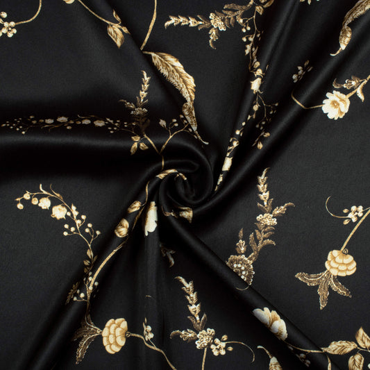-10% offBlack And Sepia Brown Floral Pattern Digital Print Japan Satin Fabric Black And Sepia Brown Floral Pattern Digital Print Japan Satin Fabric