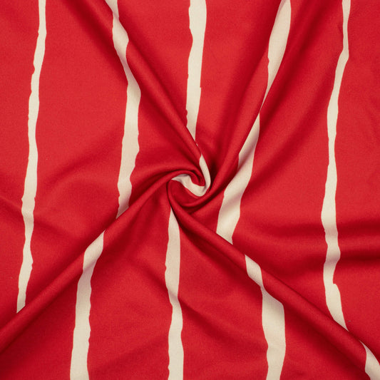 Vermilion Red And Sand Beige Stripes Pattern Digital Print Ultra Premium Butter Crepe Fabric Vermilion Red And Sand Beige Stripes Pattern Digital Print Ultra Premium Butter Crepe Fabric