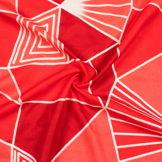 Vermilion Red And Sand Beige Geometric Pattern Digital Print Ultra Premium Butter Crepe Fabric Vermilion Red And Sand Beige Geometric Pattern Digital Print Ultra Premium Butter Crepe Fabric