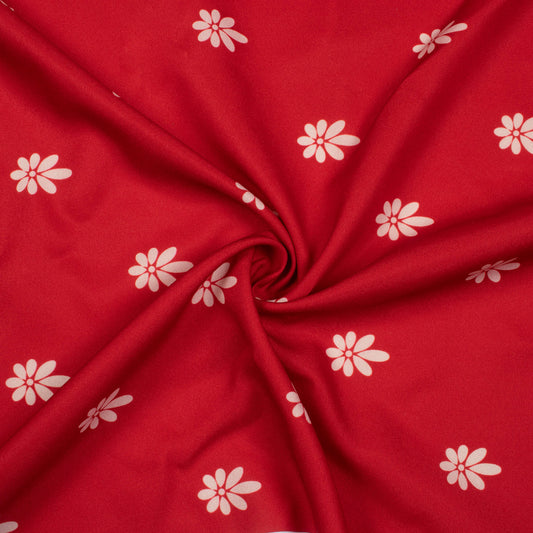 Vermilion Red And Off White Booti Pattern Digital Print Ultra Premium Butter Crepe Fabric Vermilion Red And Off White Booti Pattern Digital Print Ultra Premium Butter Crepe Fabric