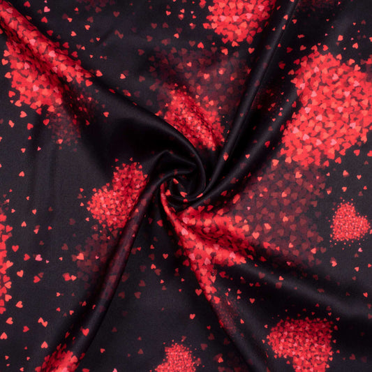 -10% offBlack And Cherry Red Heart Pattern Digital Print Japan Satin Fabric Black And Cherry Red Heart Pattern Digital Print Japan Satin Fabric