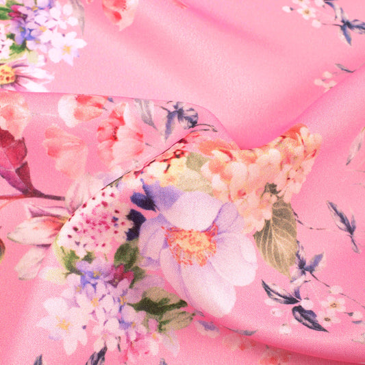 Salmon Pink And Periwinkle Purple Floral Pattern Digital Print Ultra Premium Butter Crepe Fabric Salmon Pink And Periwinkle Purple Floral Pattern Digital Print Ultra Premium Butter Crepe Fabric