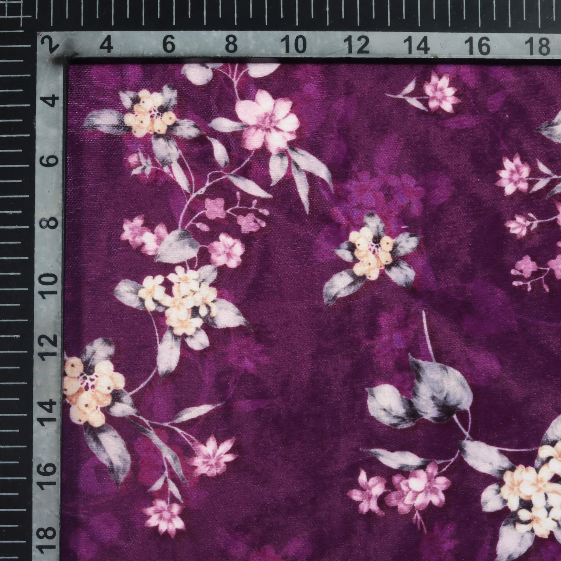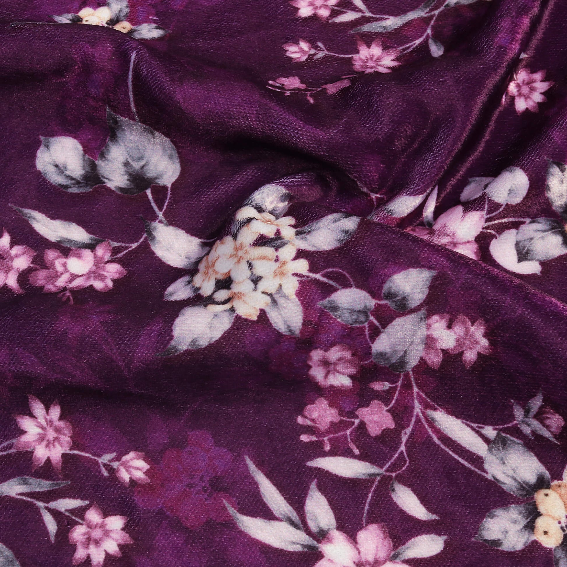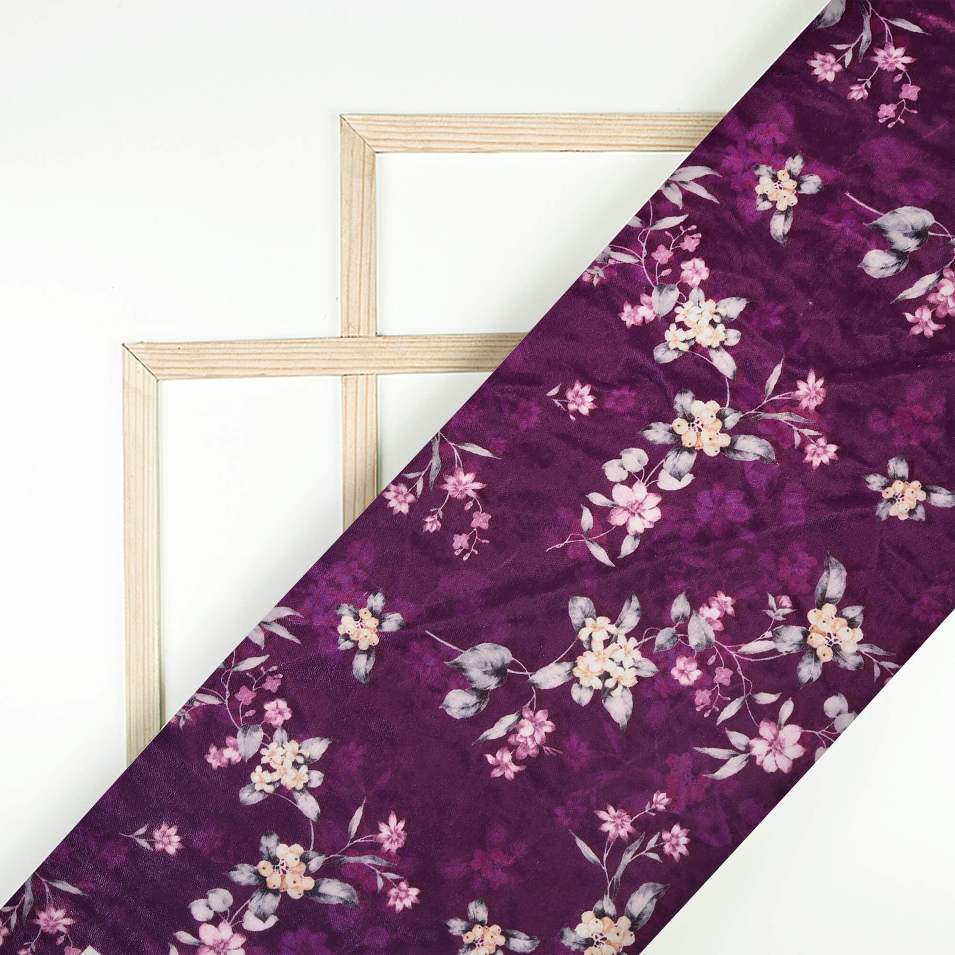Wine Purple And Peach Floral Pattern Digital Print Premium Velvet Fabric