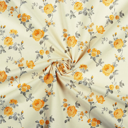 Jit's Choice Ivory Cream And Flex Yellow Floral Pattern Digital Print Rayon Fabric Jit's Choice Ivory Cream And Flex Yellow Floral Pattern Digital Print Rayon Fabric