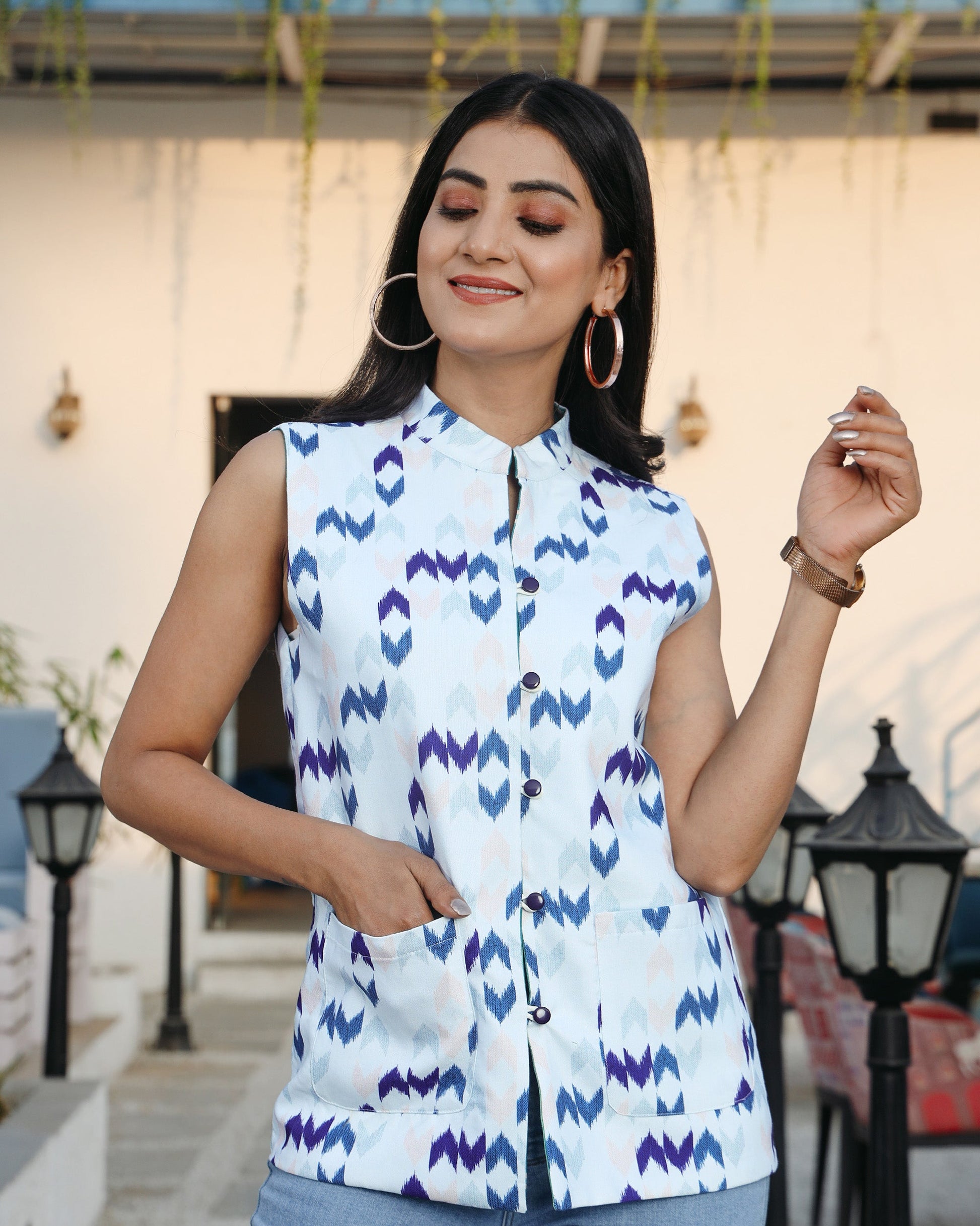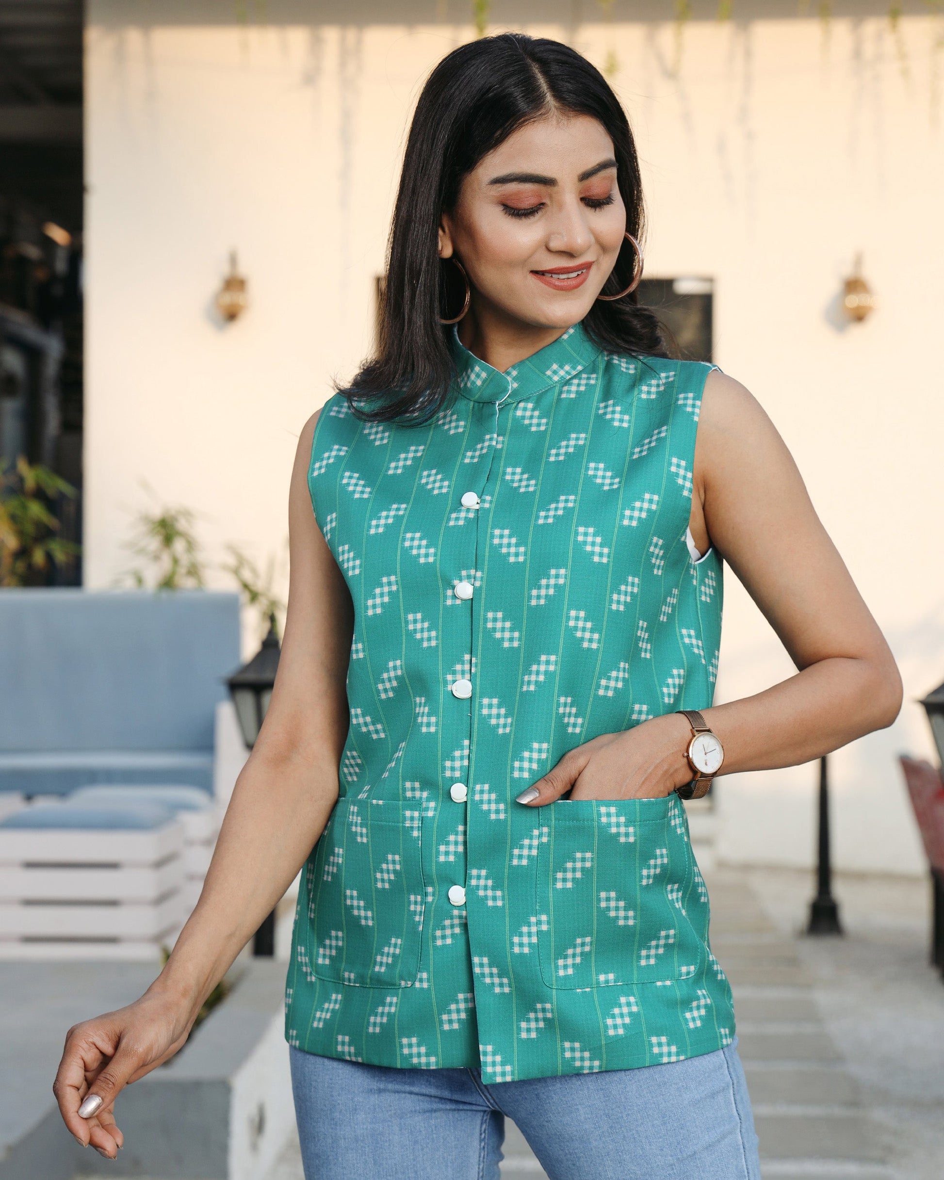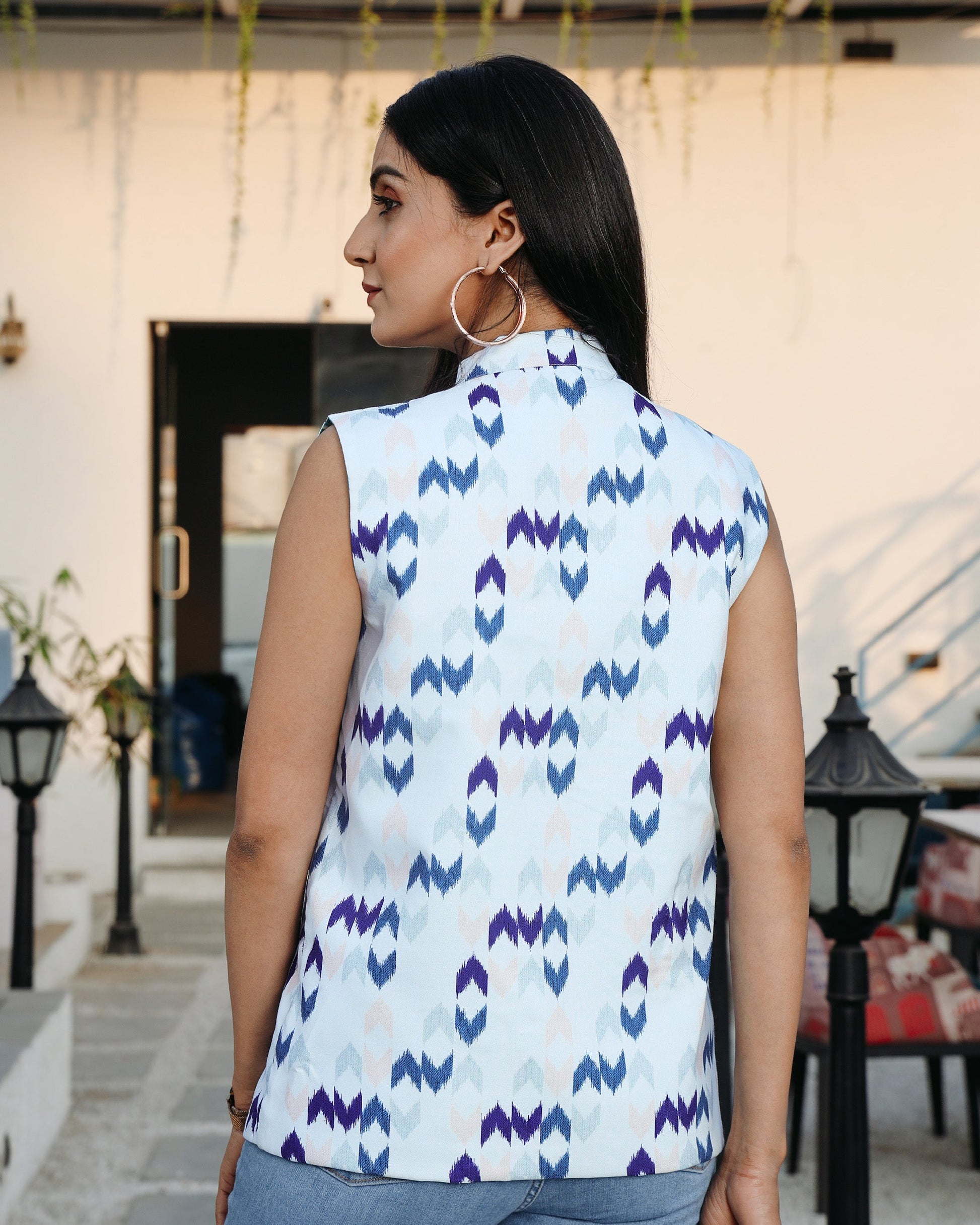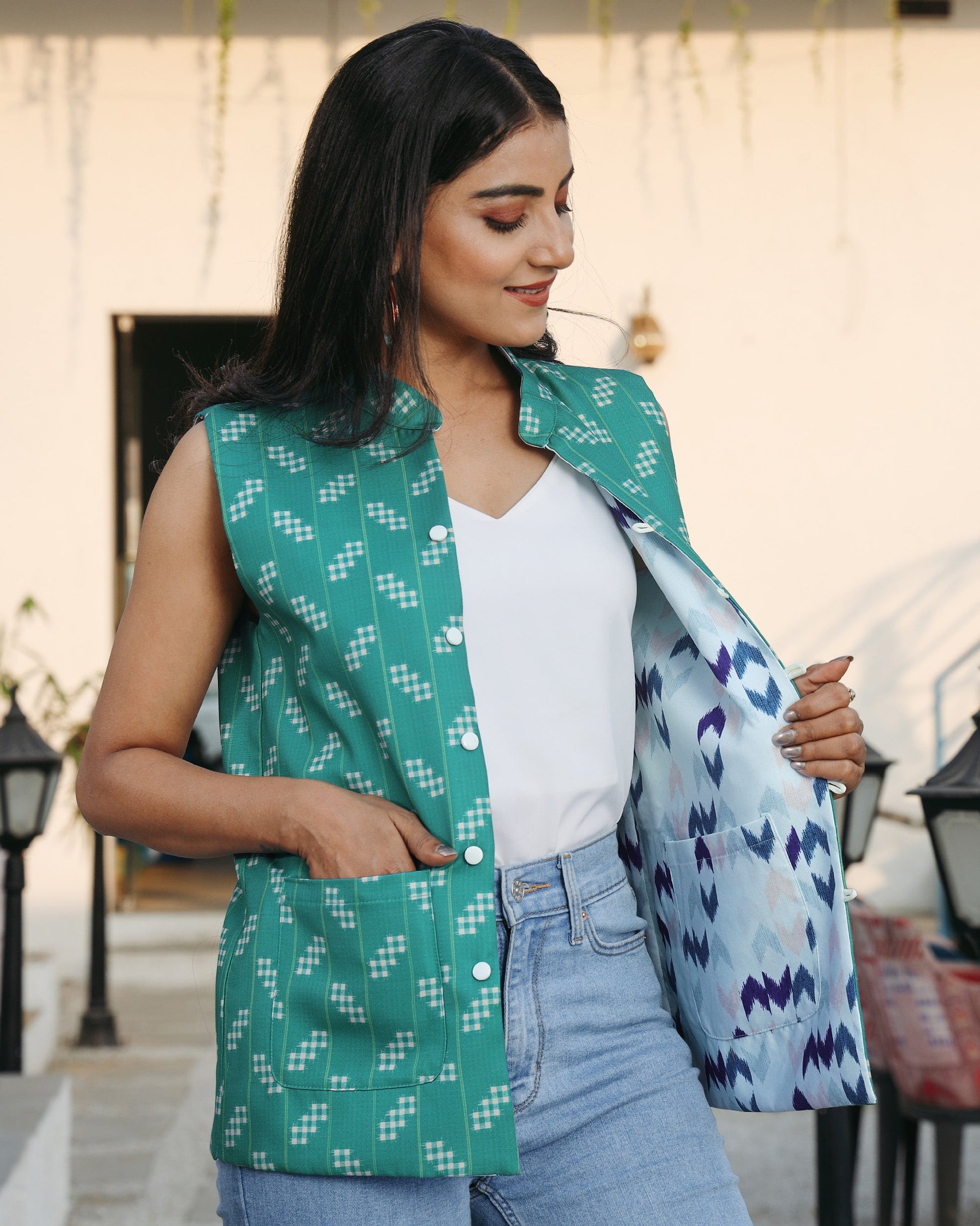 Devi Drape: Women's Ikkat Printed Reversible Jacket