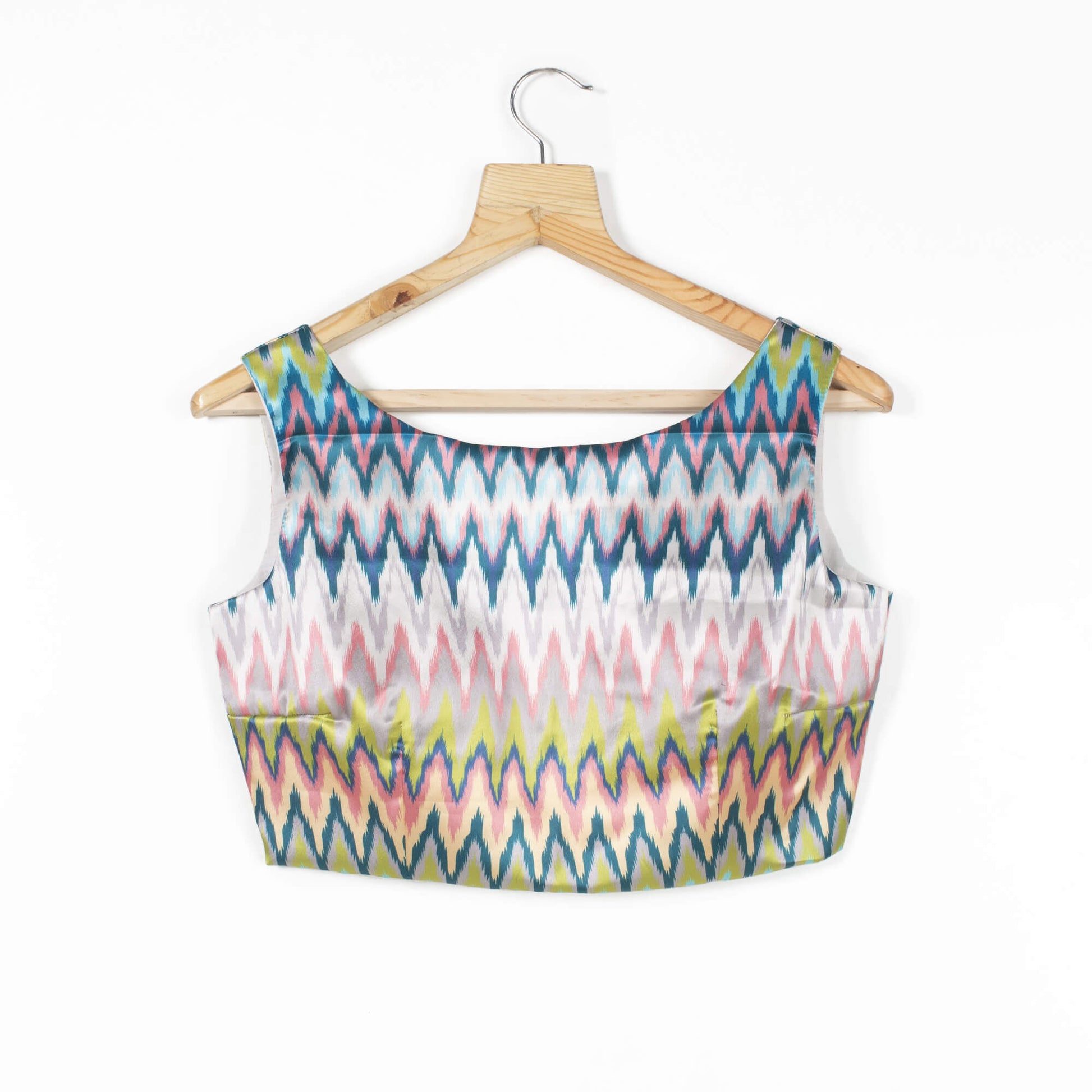 Japan Satin blouse is sleeveless and has a round neckline with a back hook closure. Beautiful pattern is made to mesmerize you.This fabric is durable and has good drapability.Match this blouse with a saree to give yourself a fashion treat.