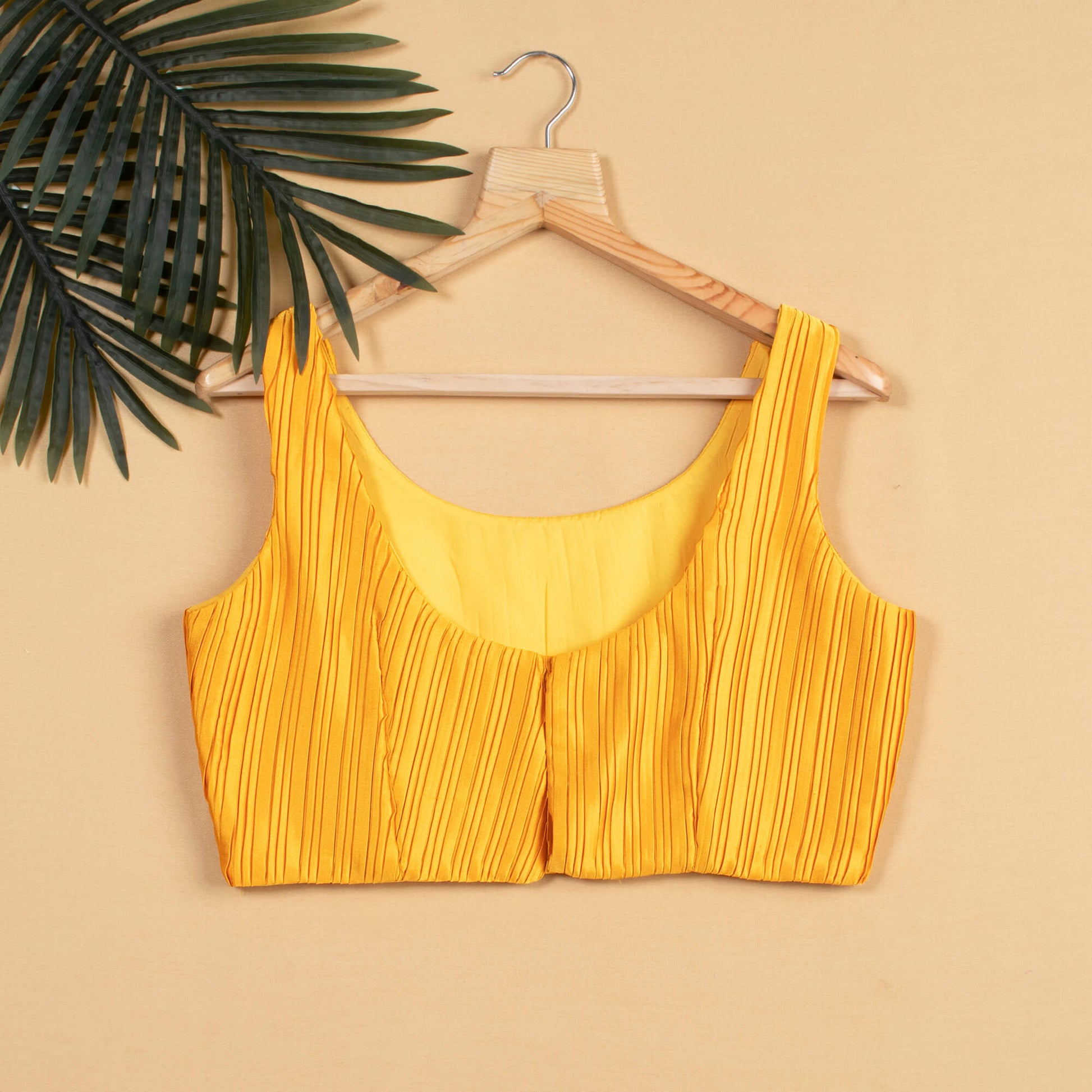 Japan Satin Pleated blouse looks gorgeous in its way. It features a round neckline, is sleeveless, and has a back hook closure option. This fabric is durable and wrinkle-resistant. Match this blouse with your favorite sarees.