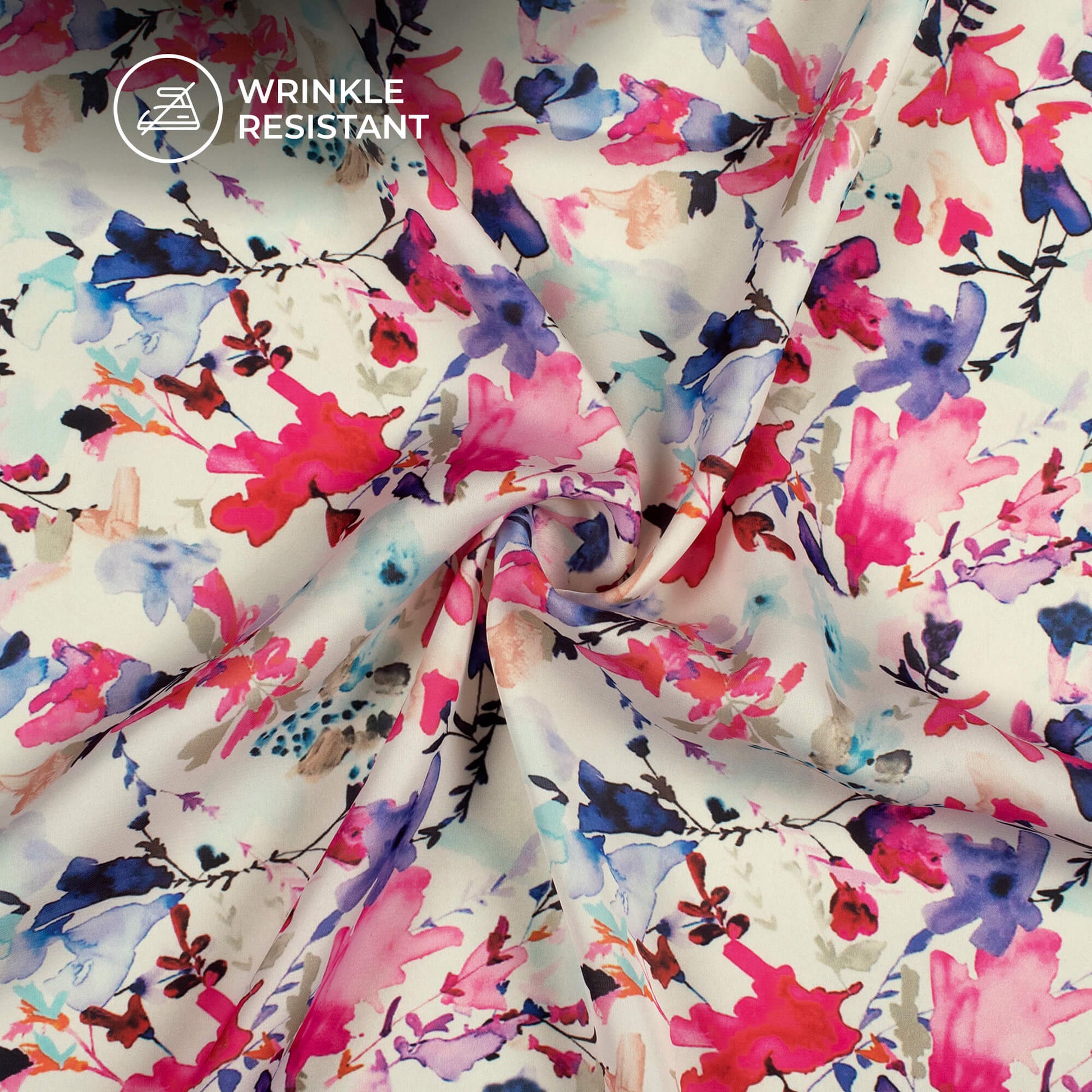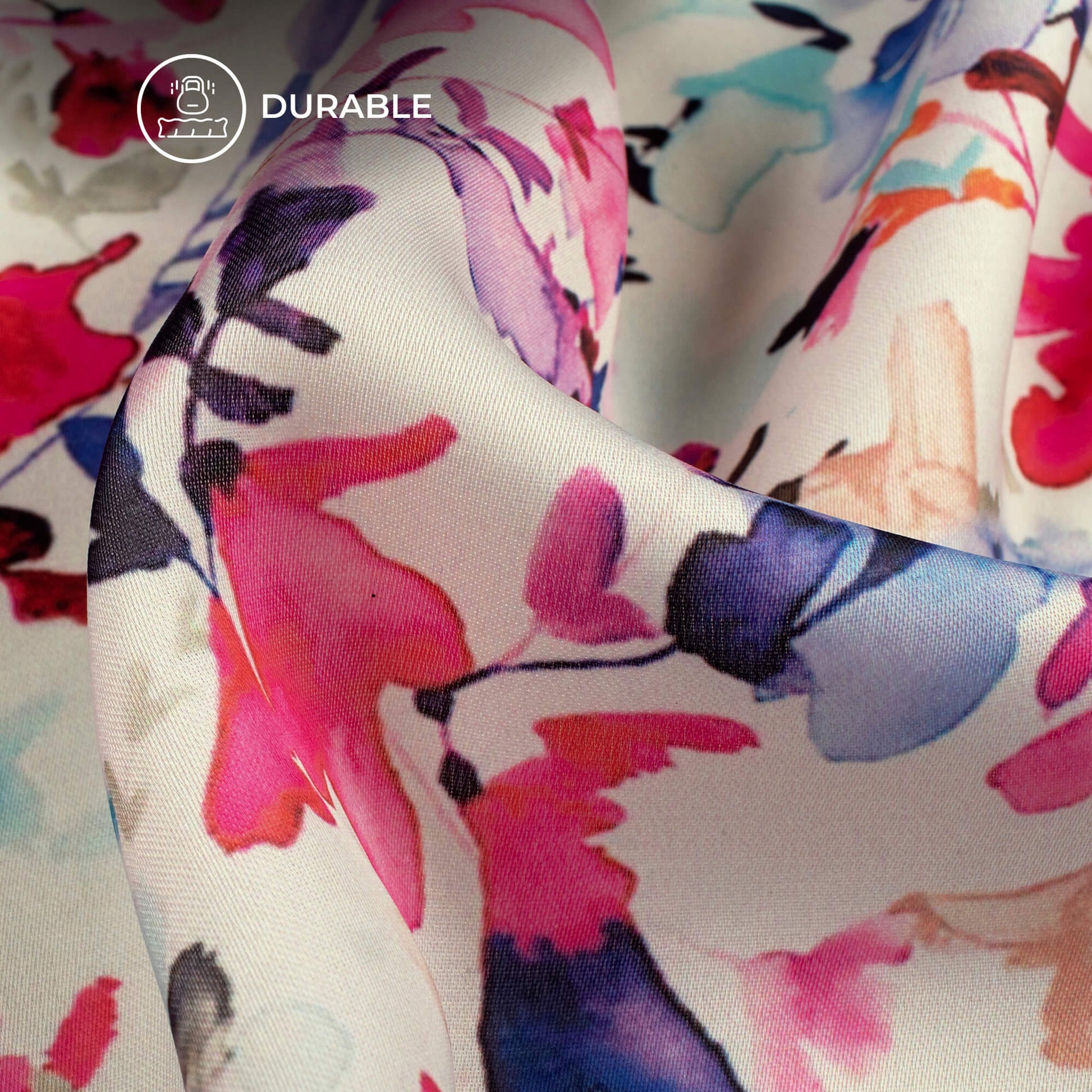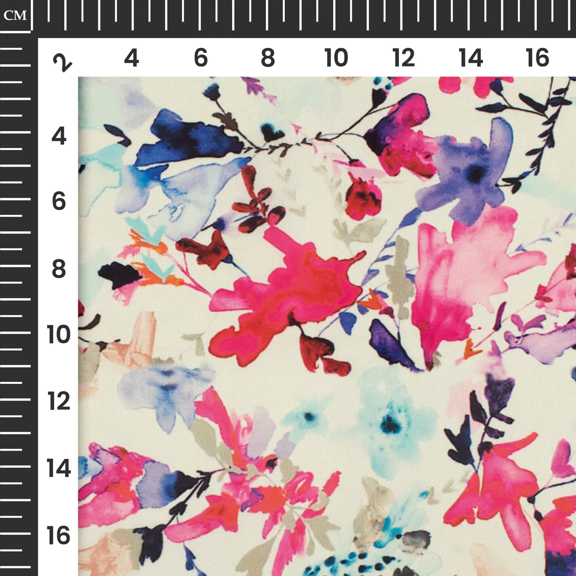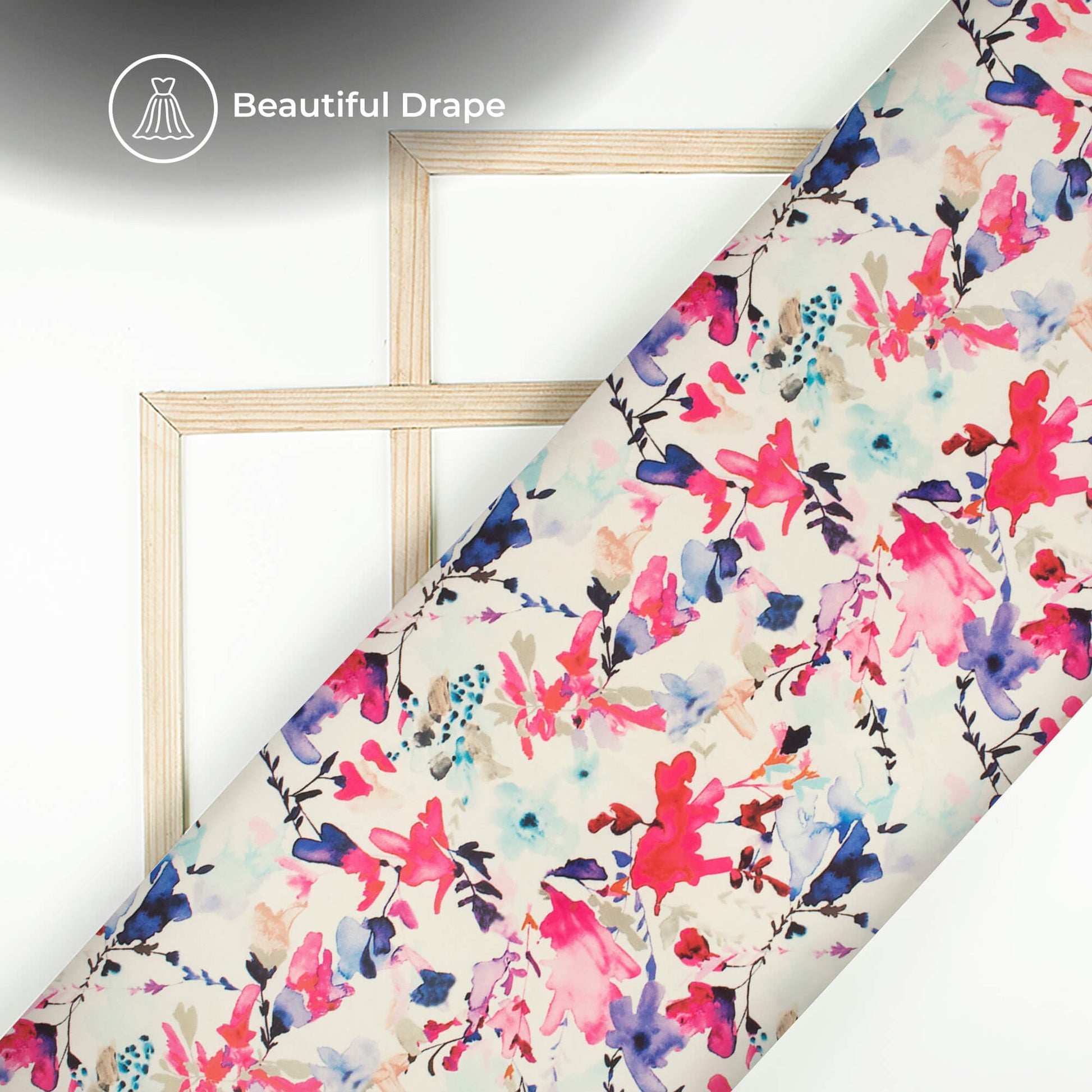Off White And Mystic Pink Floral Digital Print Imported Satin Fabric