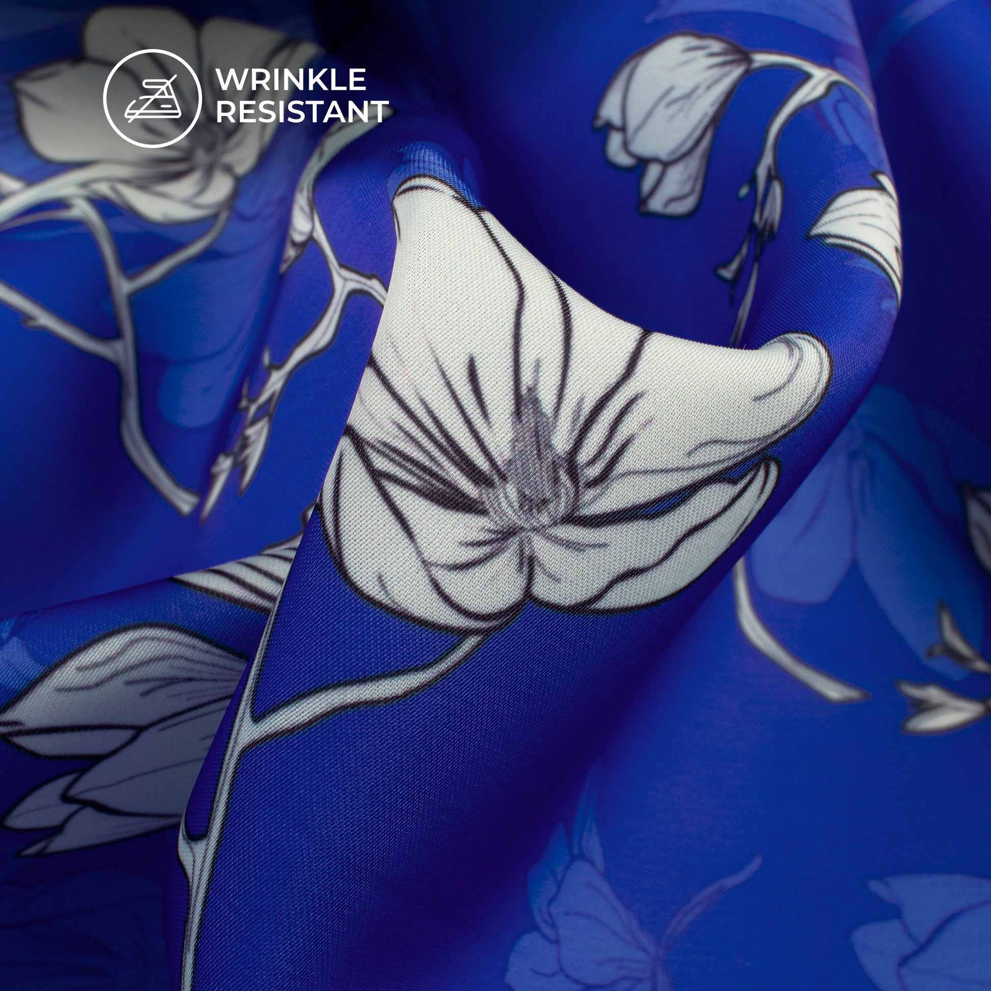 Royal Blue Floral Digital Print Imported Satin Fabric
