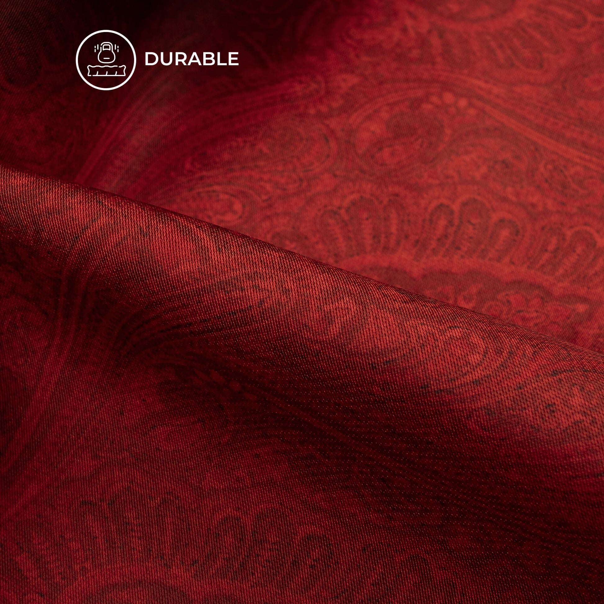 Vermilion Red Ethnic Digital Print Imported Satin Fabric