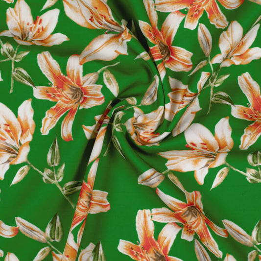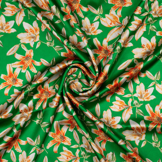 -10% offTricolor Floral Pattern Digital Print Japan Satin Fabric Tricolor Floral Pattern Digital Print Japan Satin Fabric