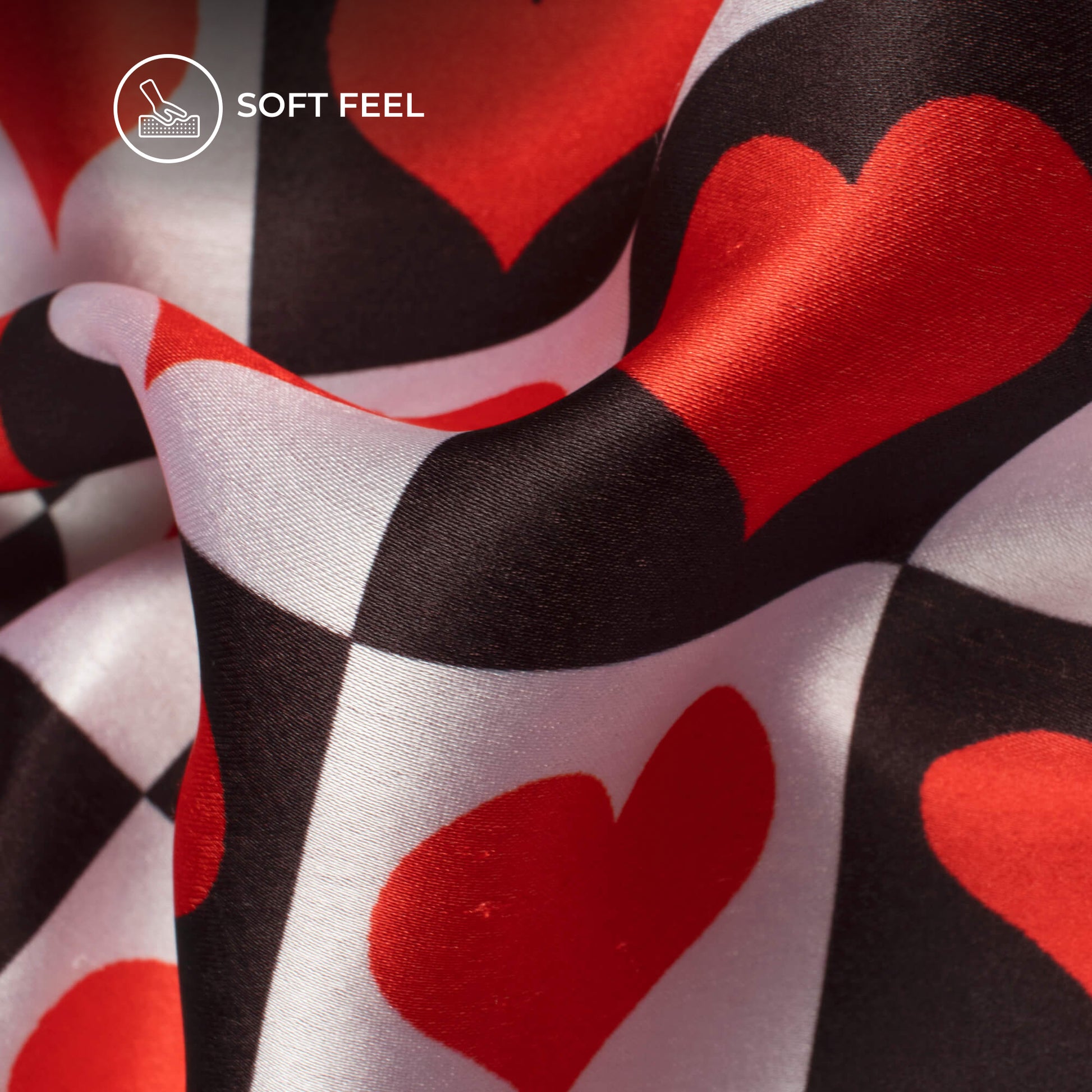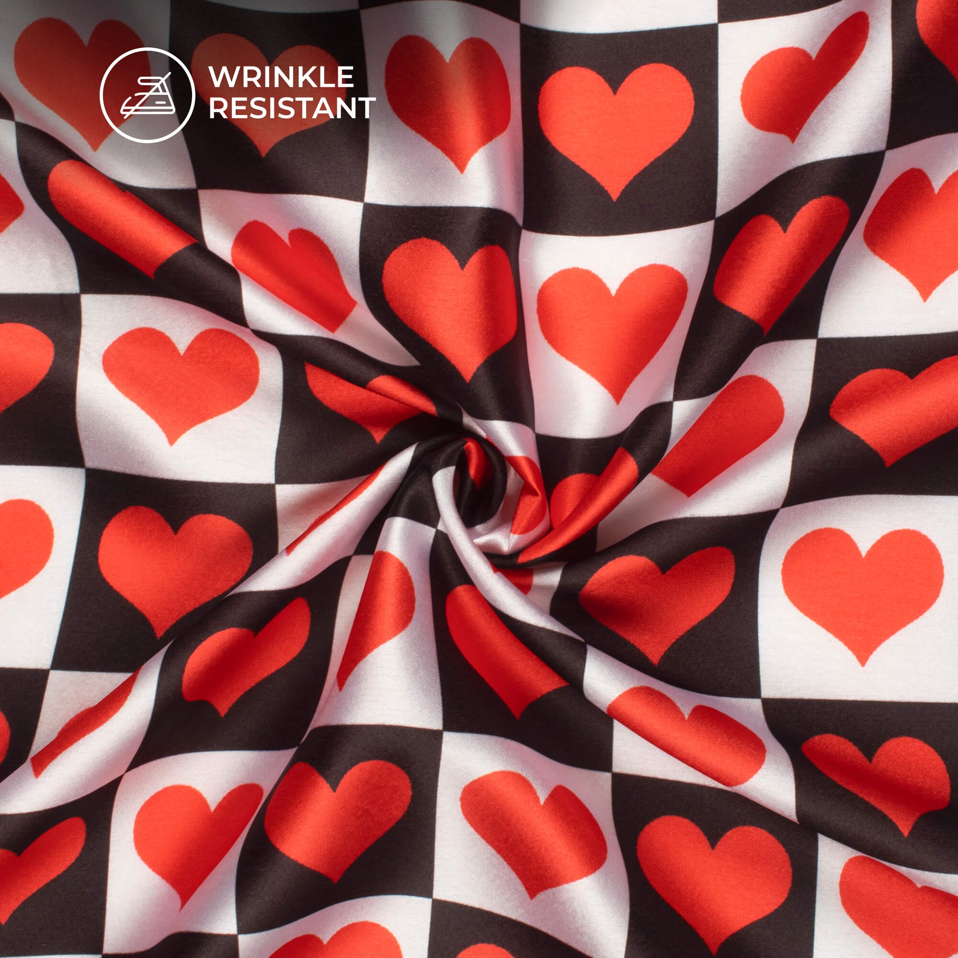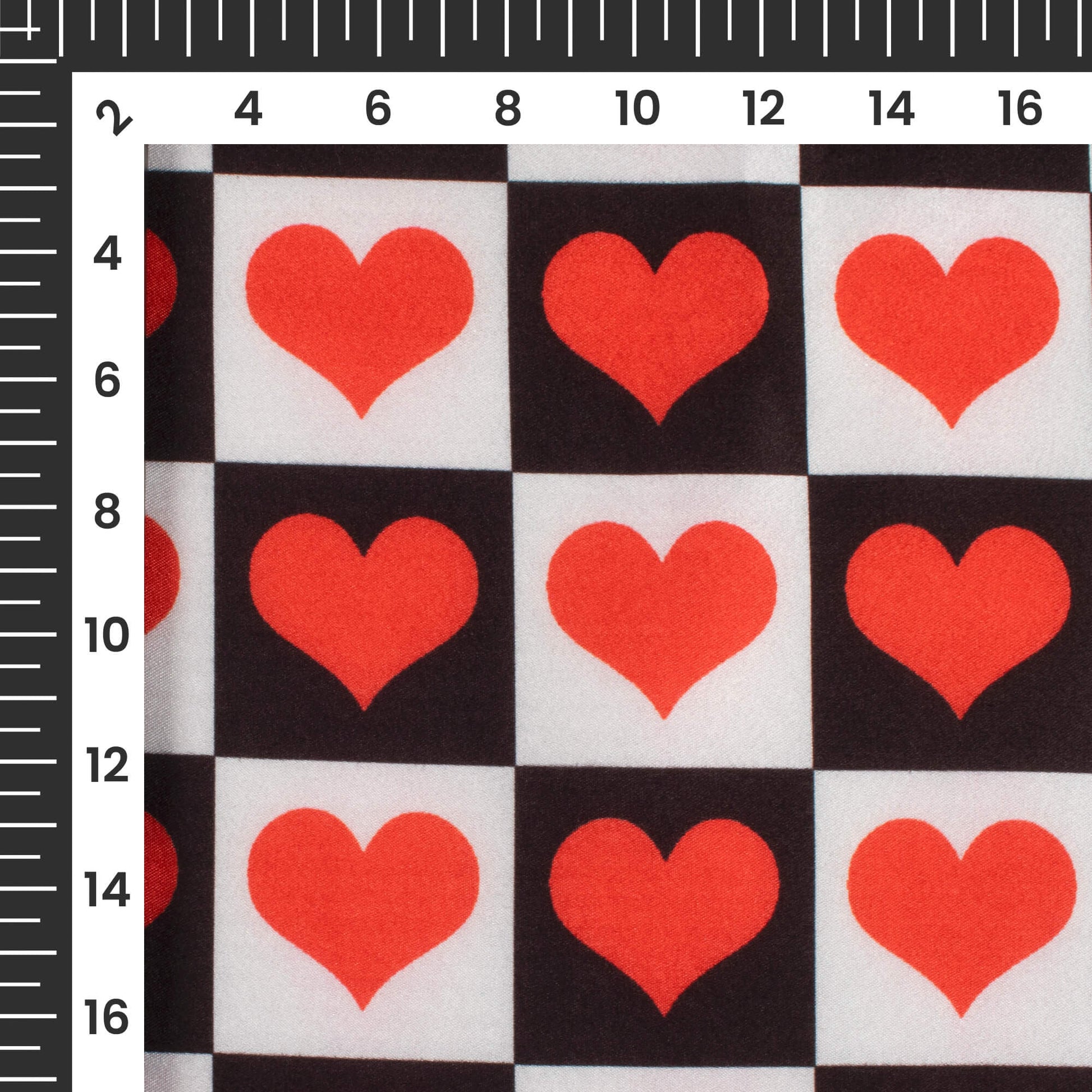 Black And White Checkered Heart Printed Japan Satin Fabric