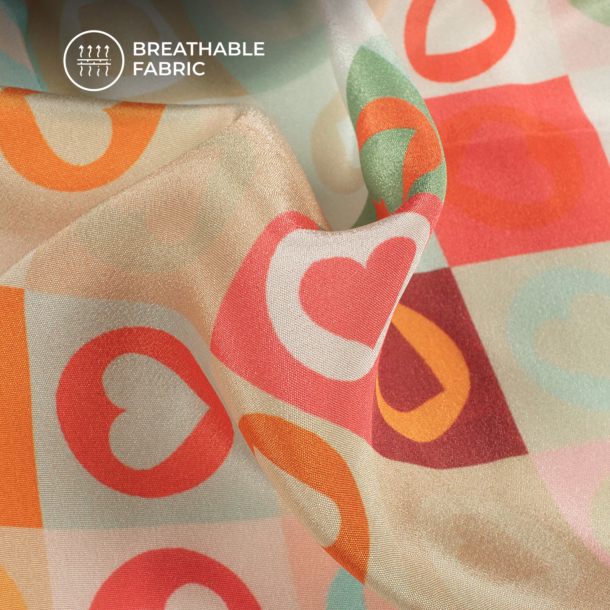 Seamless Valentine's Heart Printed Crepe Silk Fabric