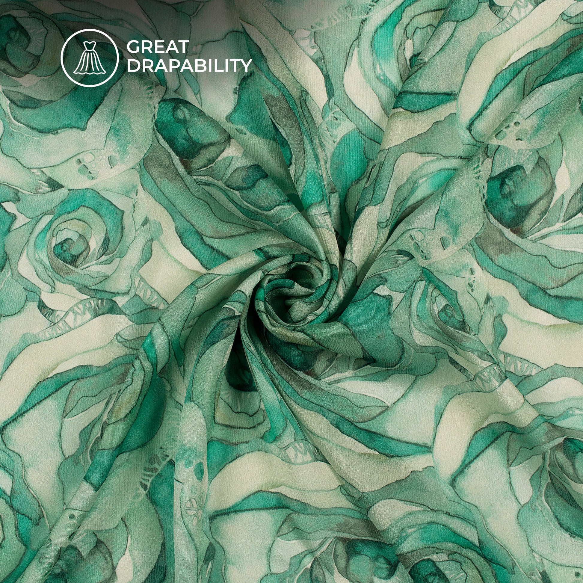 Gorgeous Rose Floral Digital Print Viscose Chinnon Chiffon Fabric