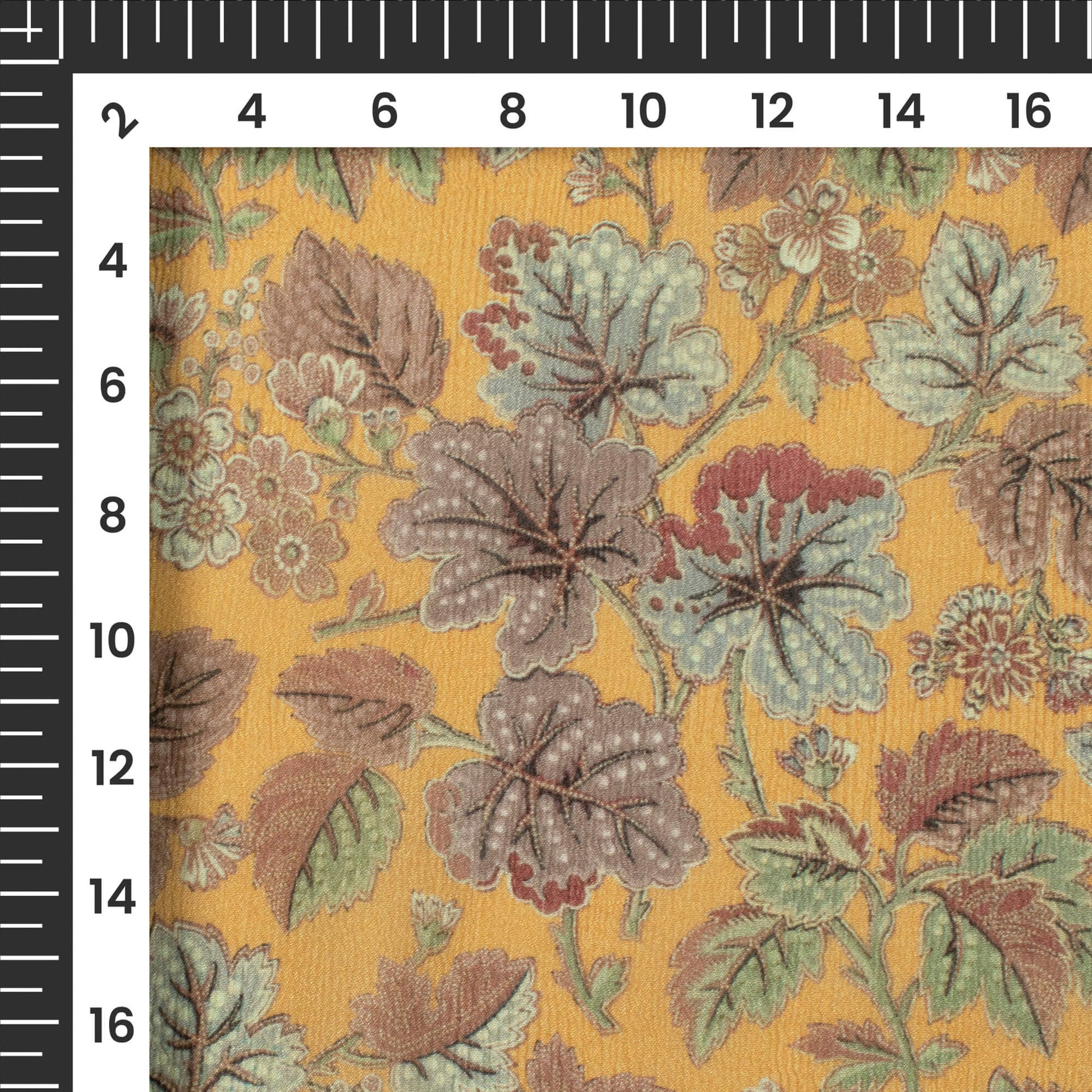 Mustard Yellow Floral Digital Print Viscose Chinnon Chiffon Fabric