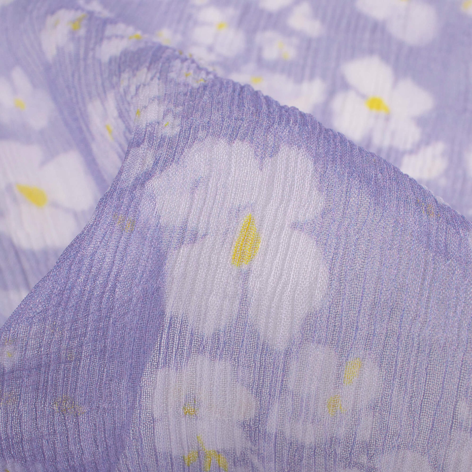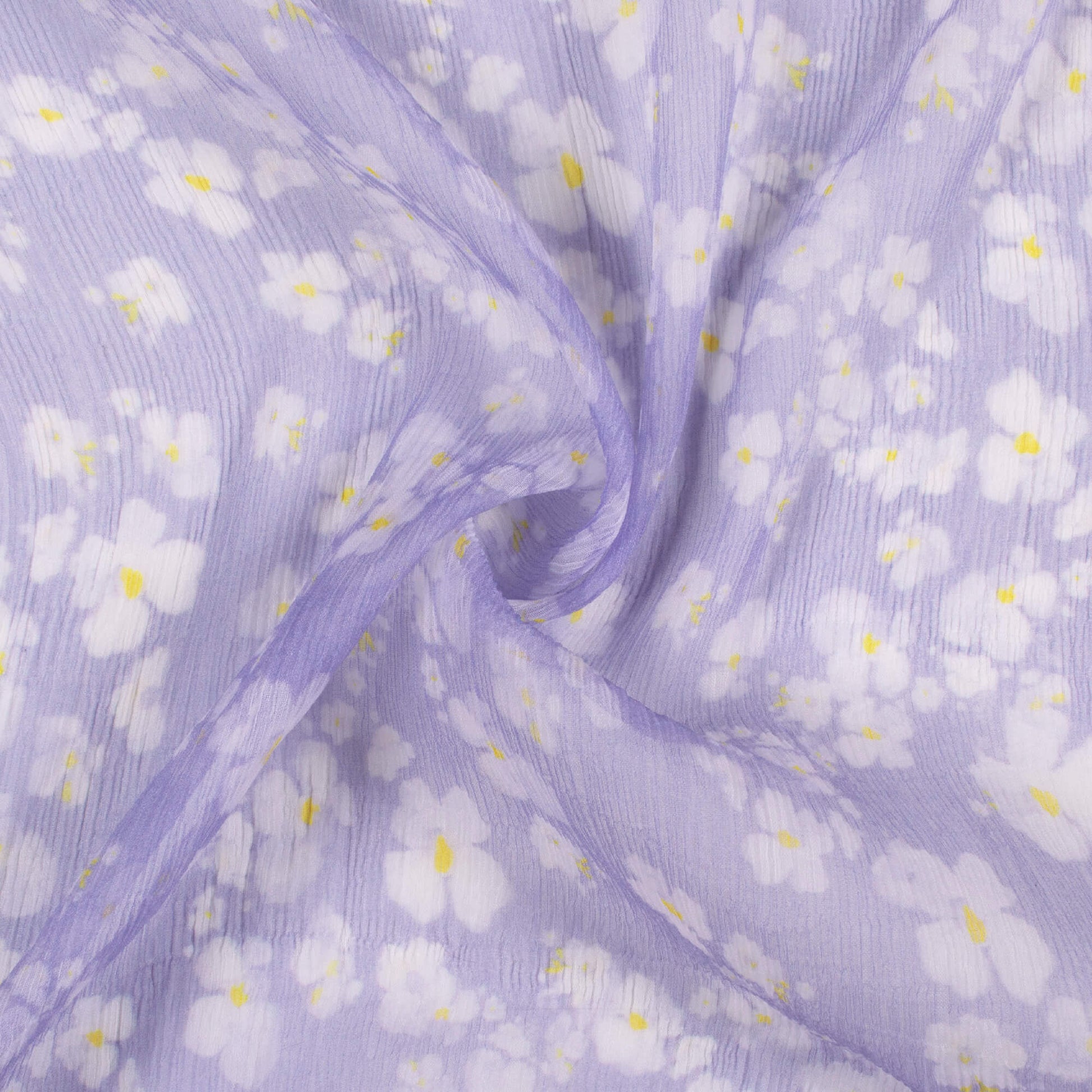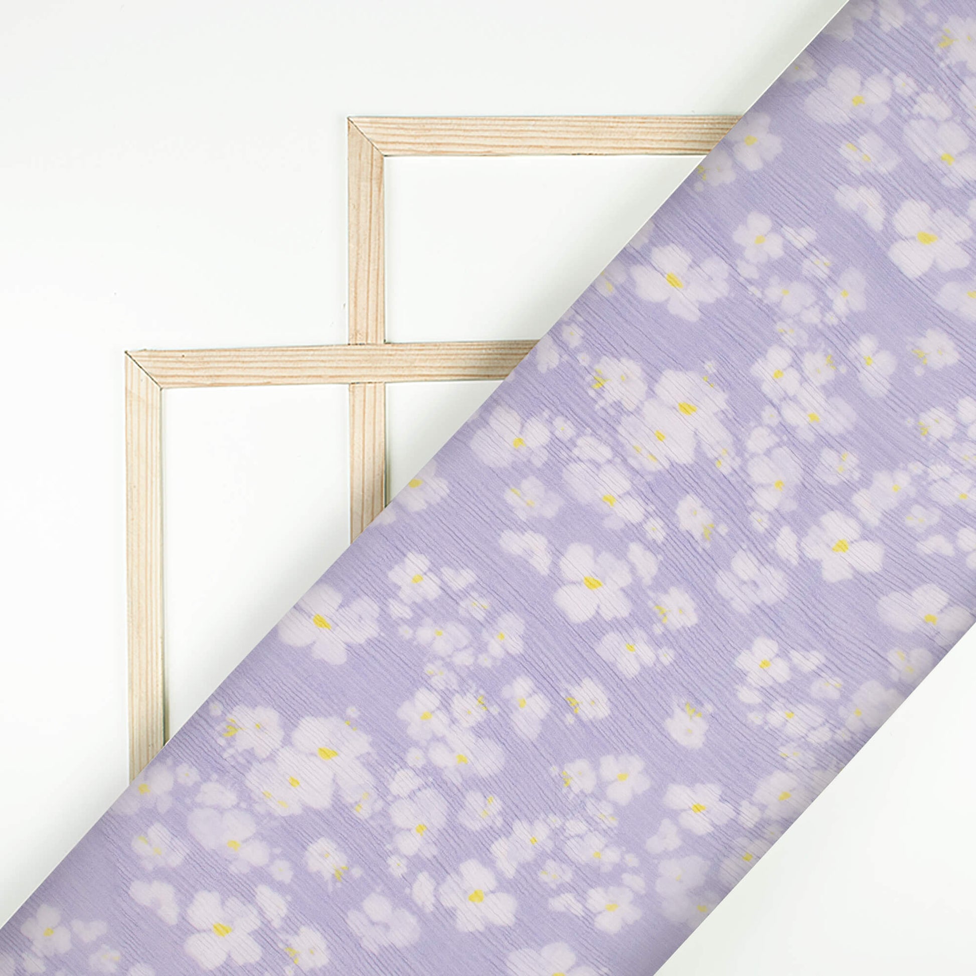 Iris Purple And White Floral Pattern Digital Print Bemberg Chiffon Fabric