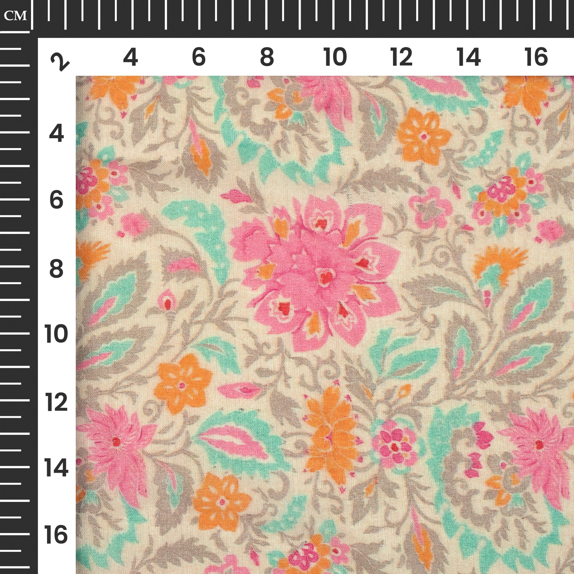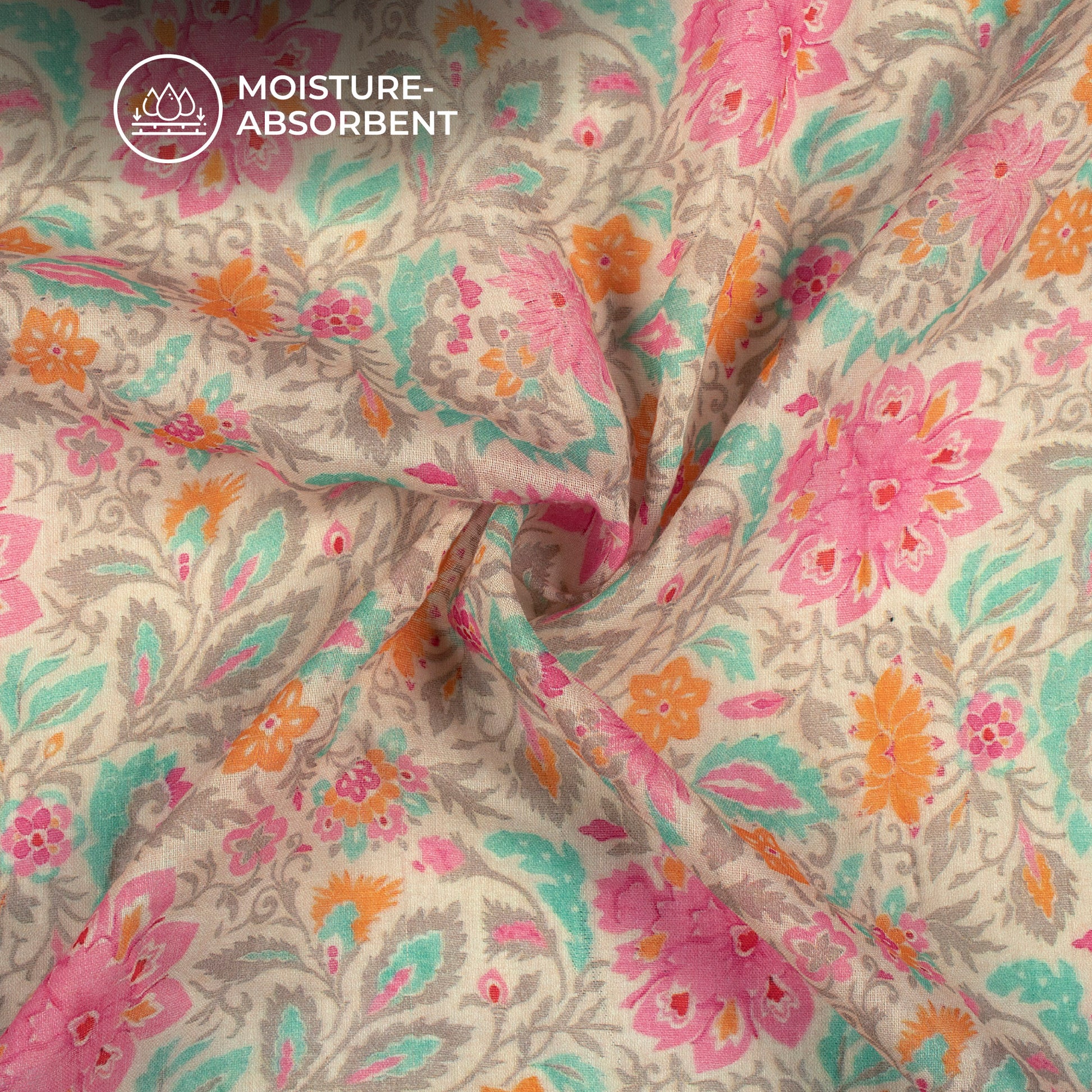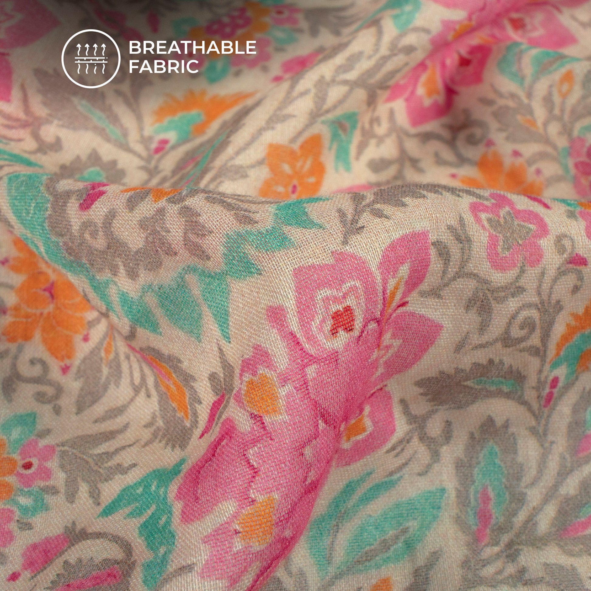 Taffy Pink And Beige Floral Digital Print Pure Cotton Mulmul Fabric