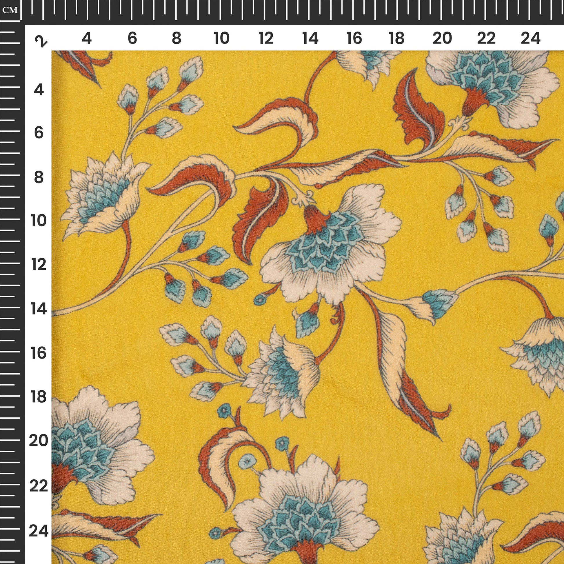 Amber Yellow Floral Digital Print Pure Georgette Fabric
