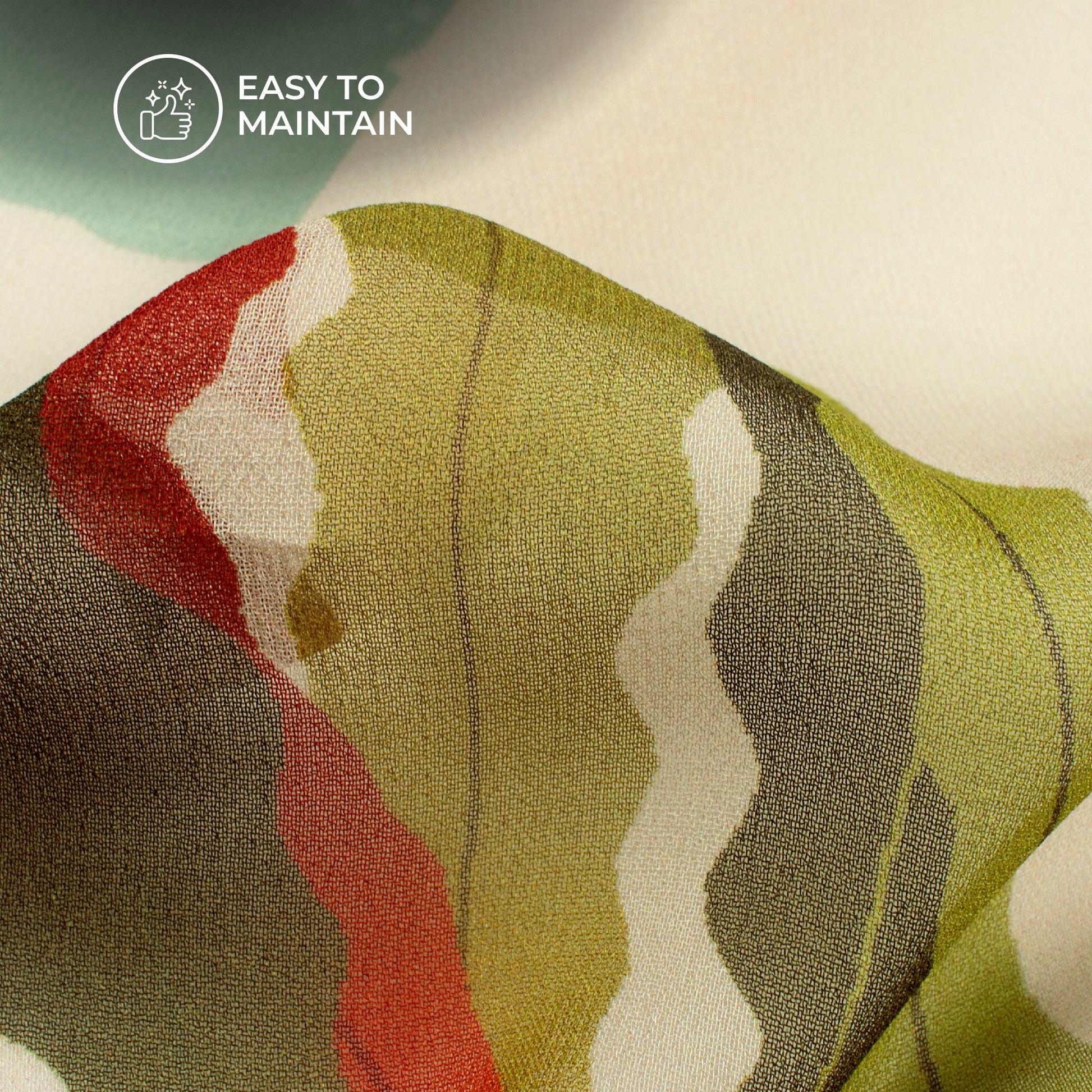 Georgette is a sheer, lightweight, dull-finished fabric. It is relaxingly breathable and performs an overall bouncy look. Georgette also offers a nice structure and drape, especially for sarees, dresses, and skirts.