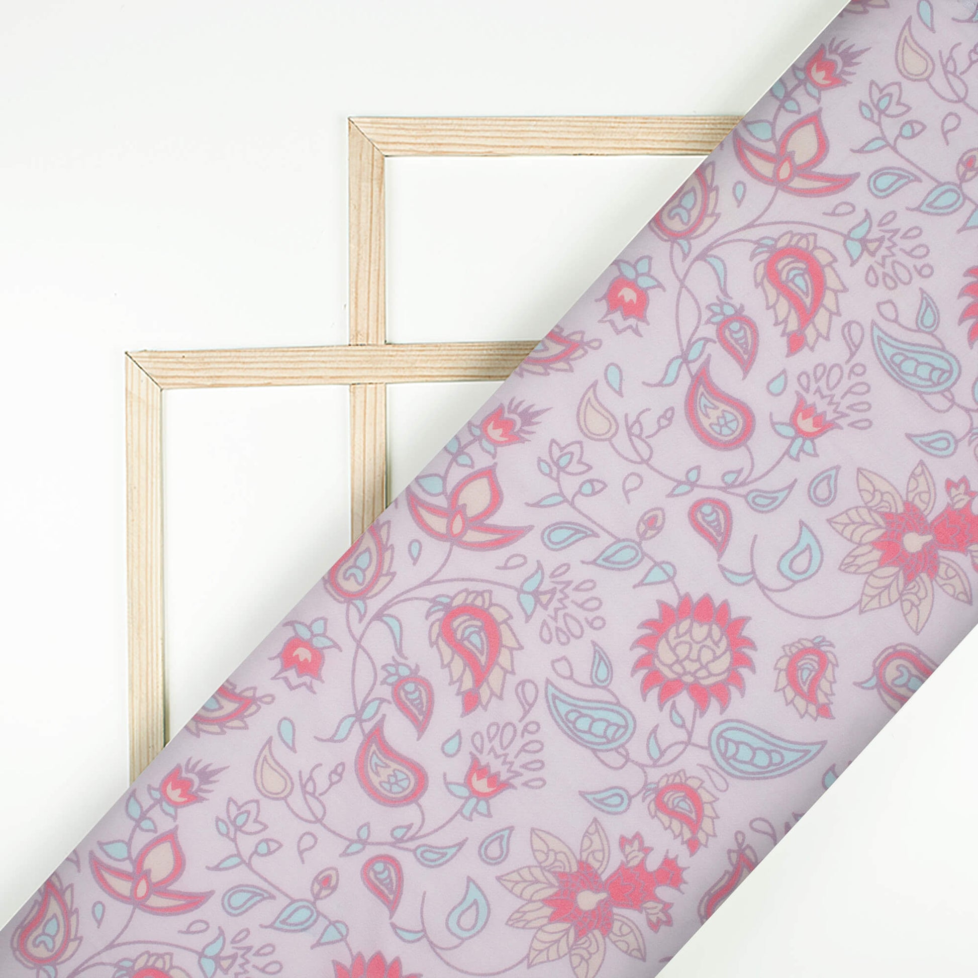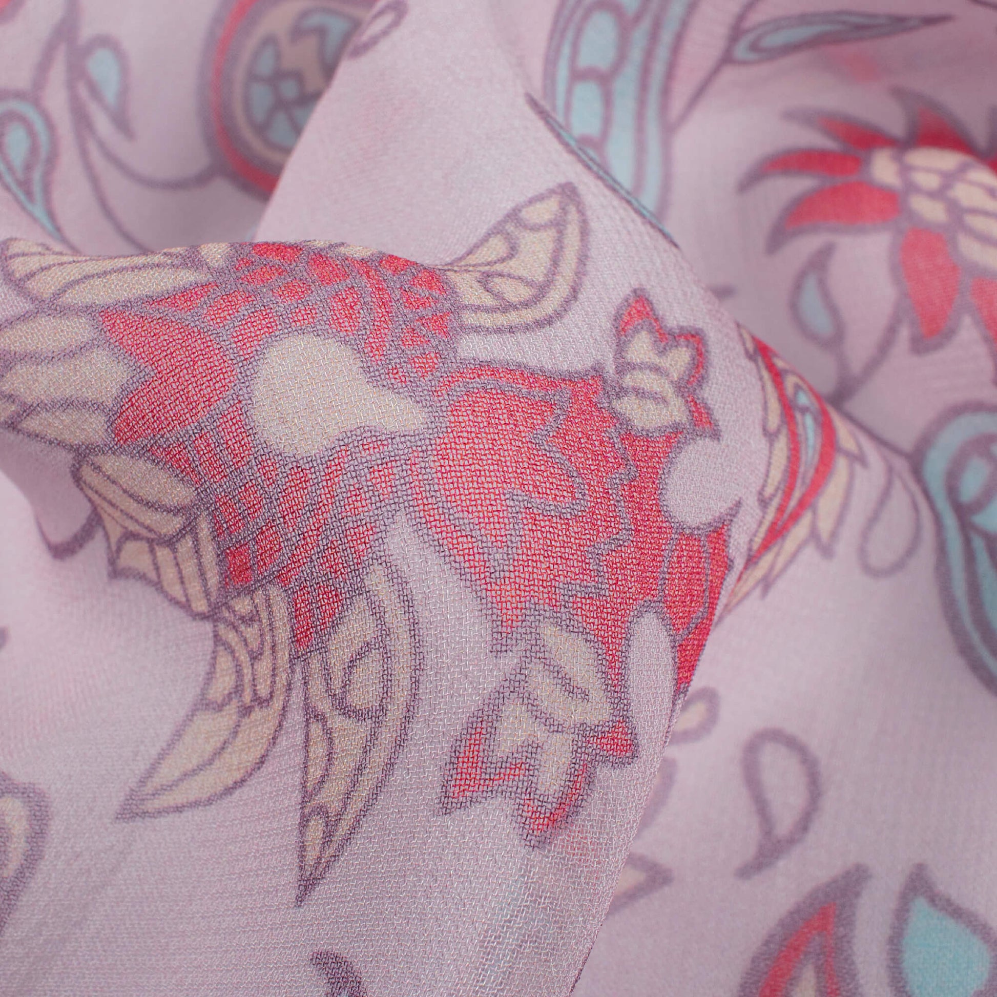 Blush Pink and Red Floral Pattern Digital Print Pure Georgette Fabric