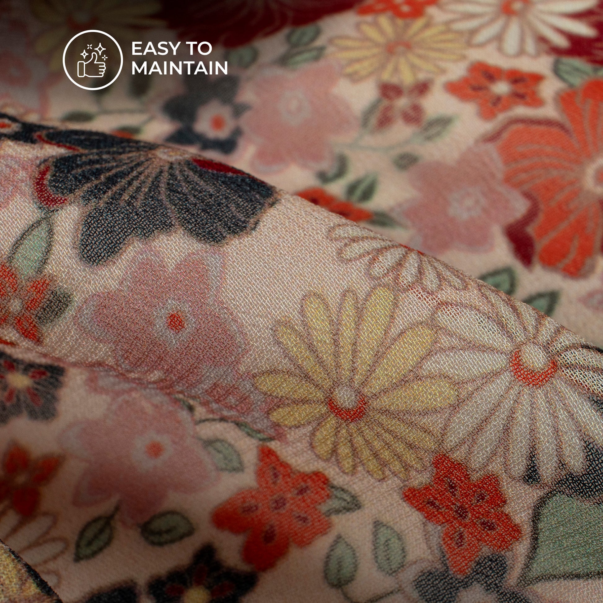 Georgette is a sheer, lightweight, dull-finished fabric. It is relaxingly breathable and performs an overall bouncy look. Georgette also offers a nice structure and drape, especially for sarees, dresses, and skirts.