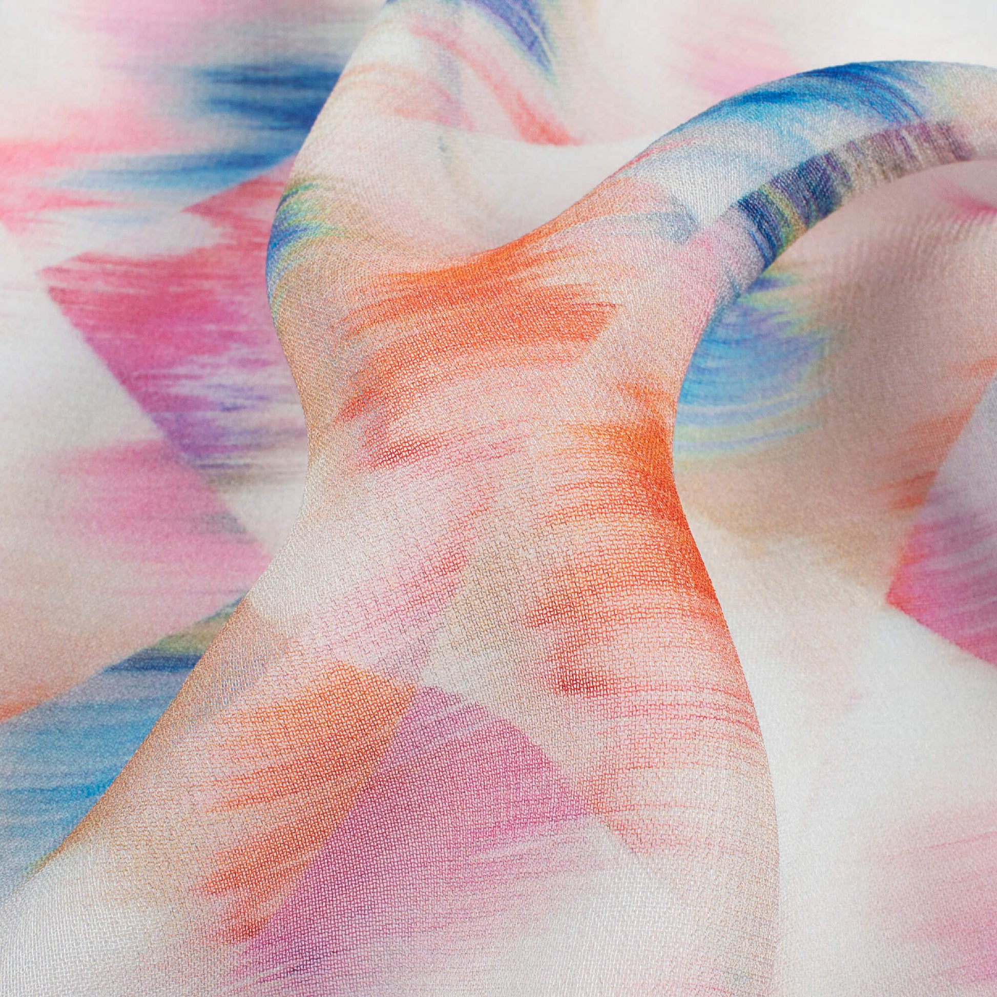 Georgette is a sheer, lightweight, dull-finished fabric. It is relaxingly breathable and performs an overall bouncy look. Georgette also offers a nice structure and drape, especially for sarees, dresses, and skirts.