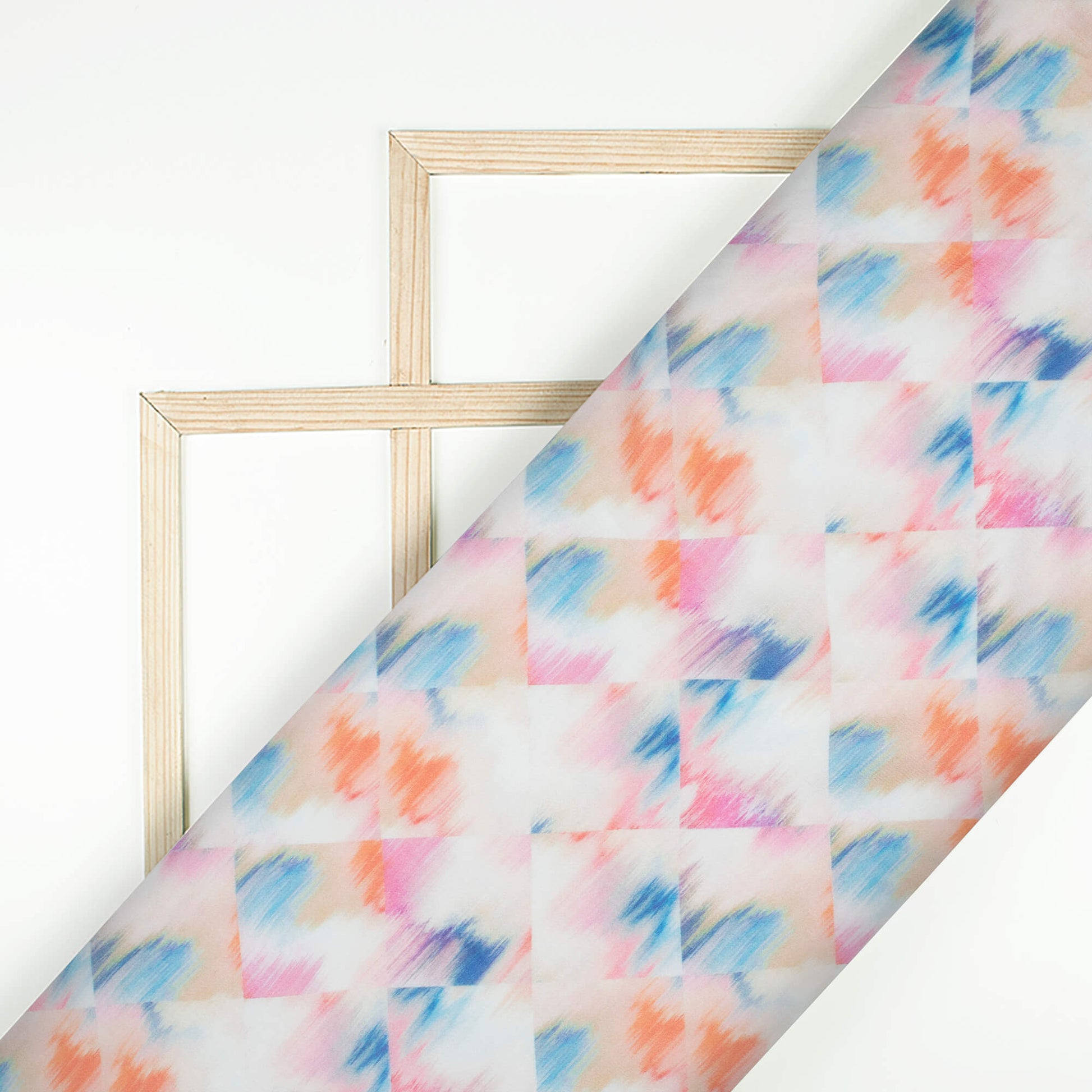 Carnation Pink And Navy Blue Abstract Pattern Digital Print Pure Georgette Fabric