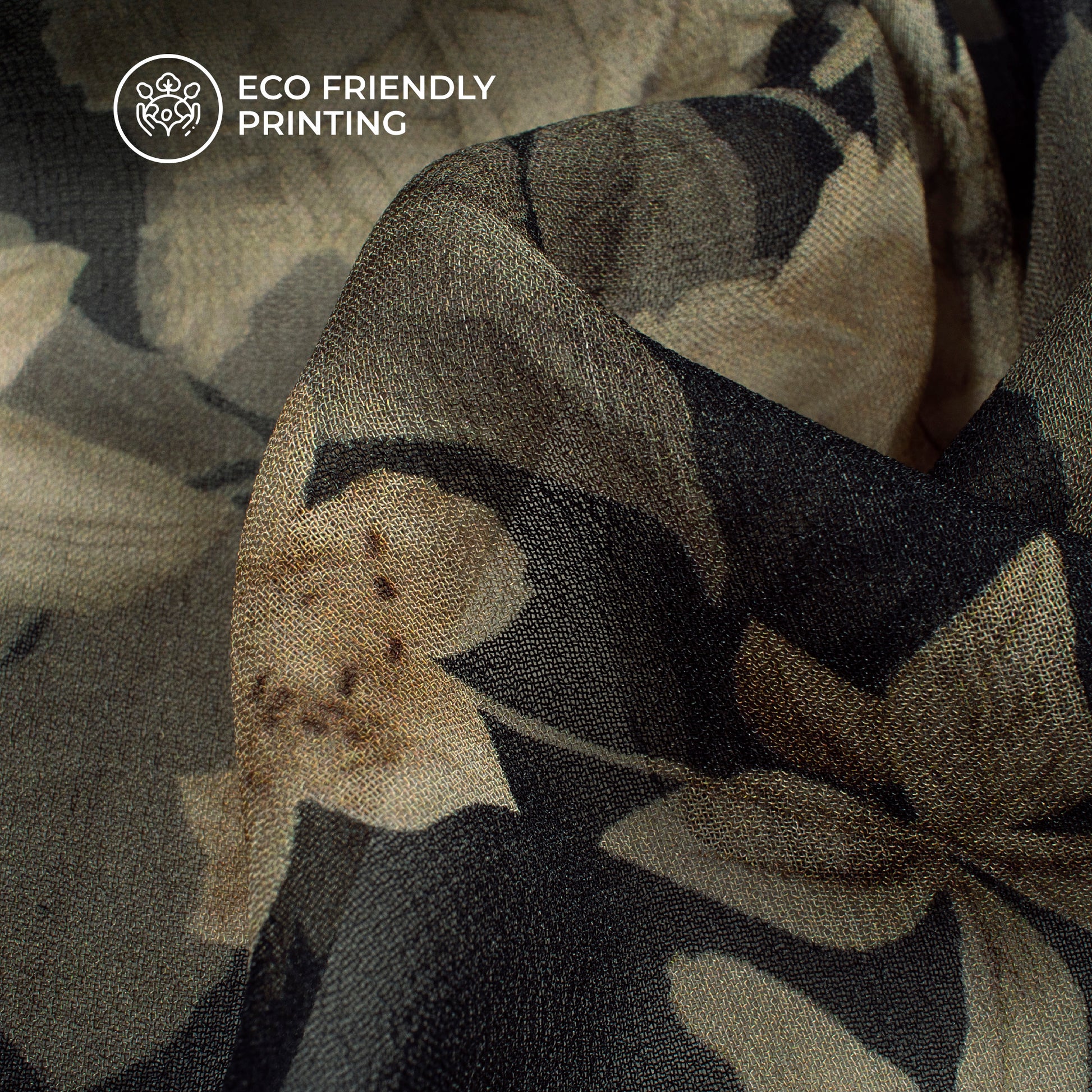 Dark Teal Blue And Beige Floral Digital Print Pure Georgette Fabric