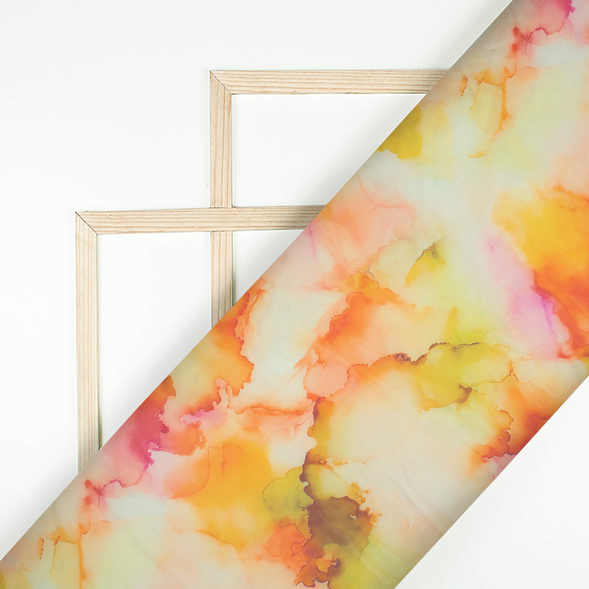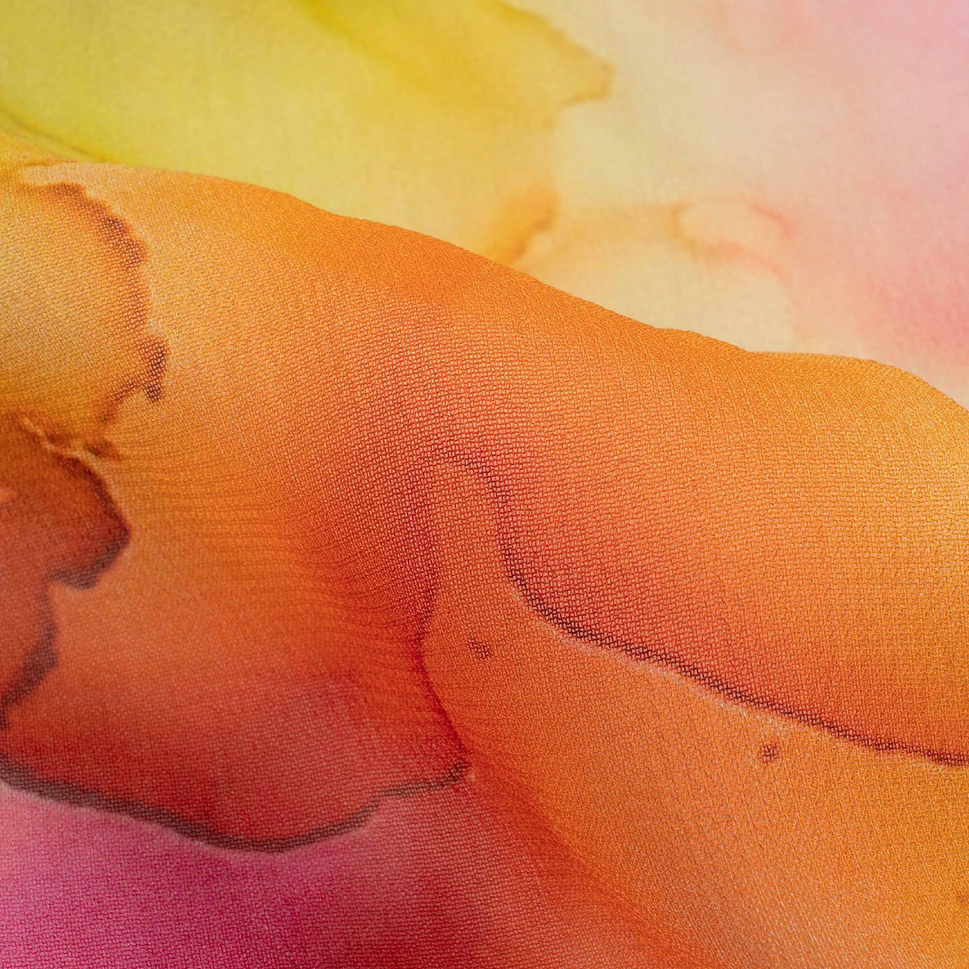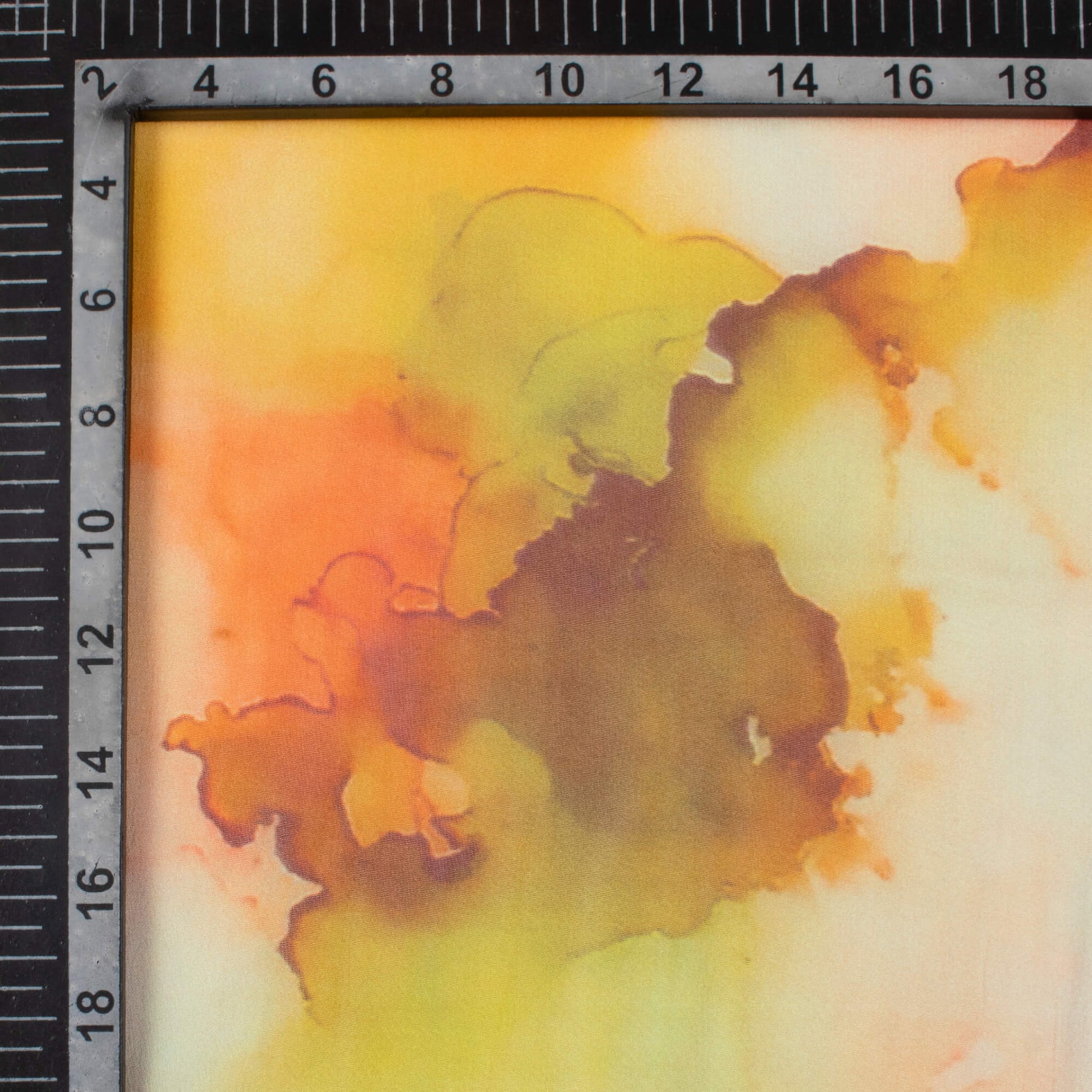 Fire Orange And Olive Green Marble Pattern Digital Print Pure Georgette Fabric