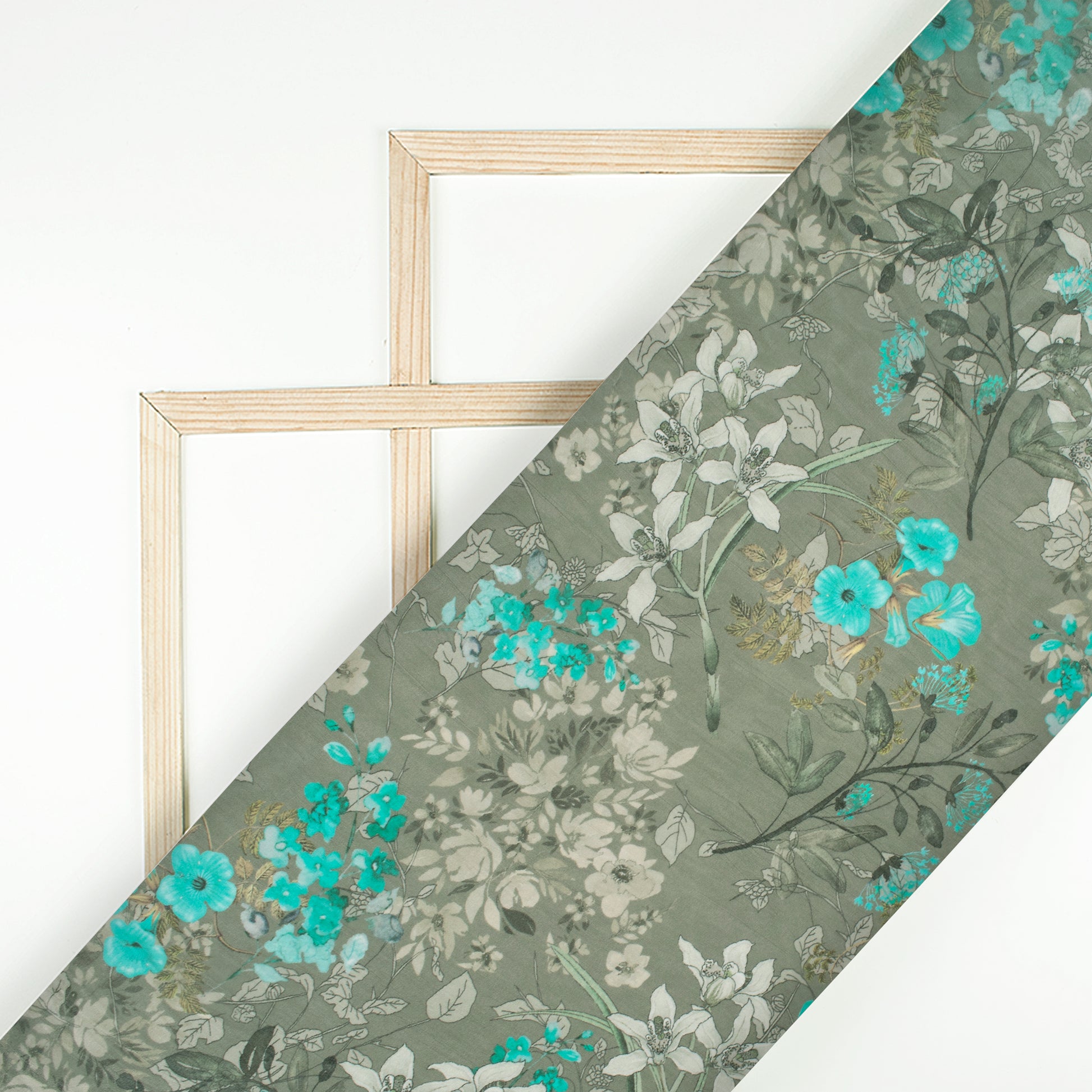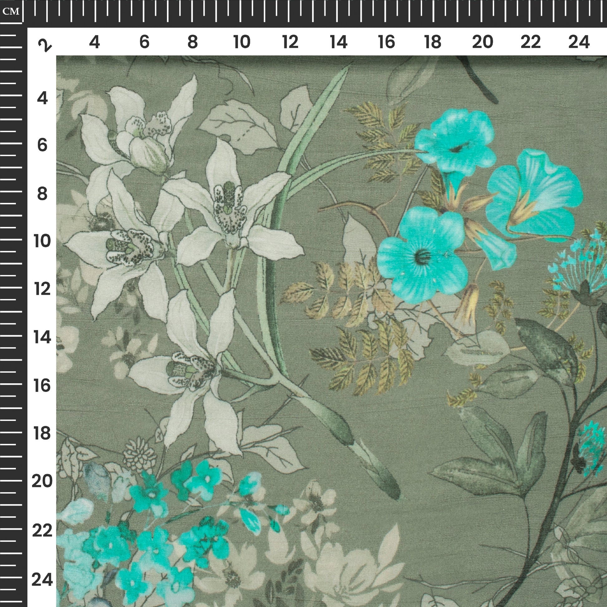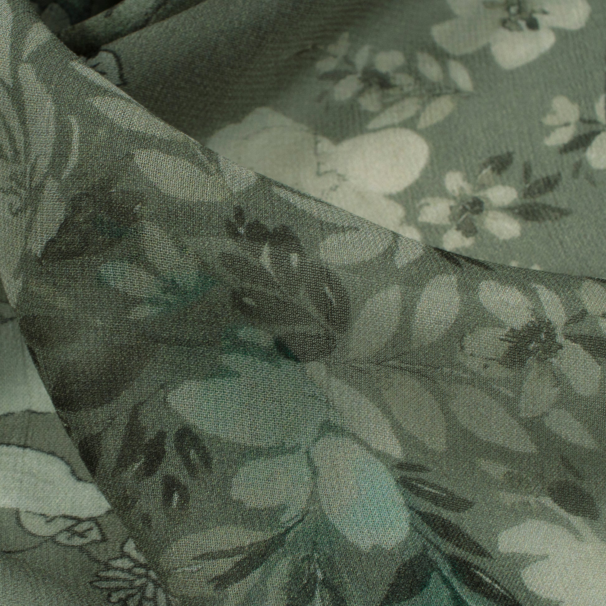 Gray Green Floral Digital Print Viscose Georgette Fabric