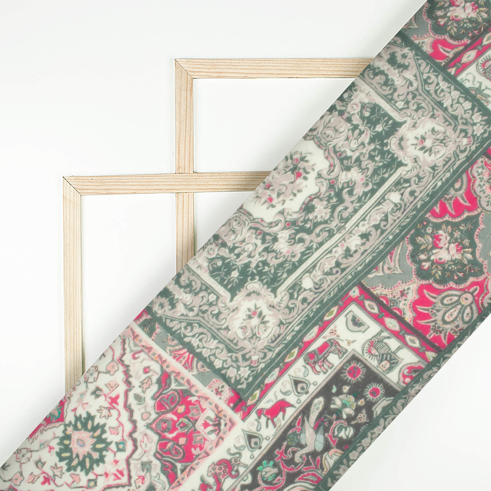 Ivory Cream And Pink Traditional Digital Print Pure Georgette Fabric