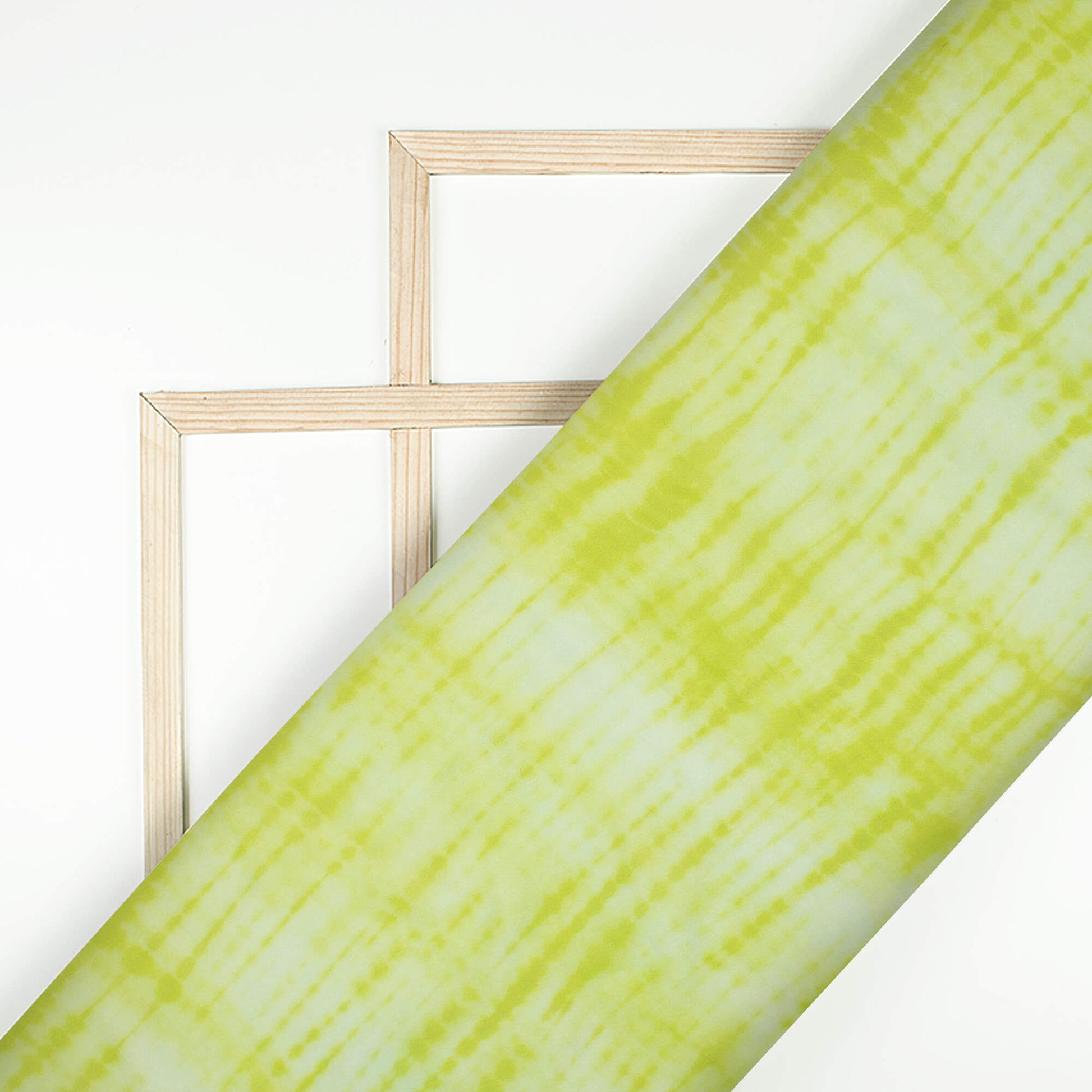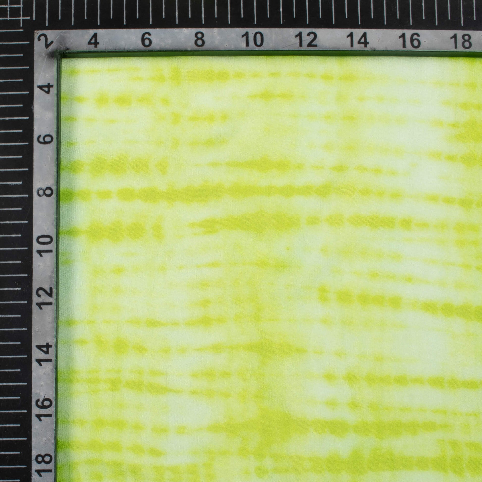 Lime Green And White Shiiborii Pattern Digital Print Pure Georgette Fabric