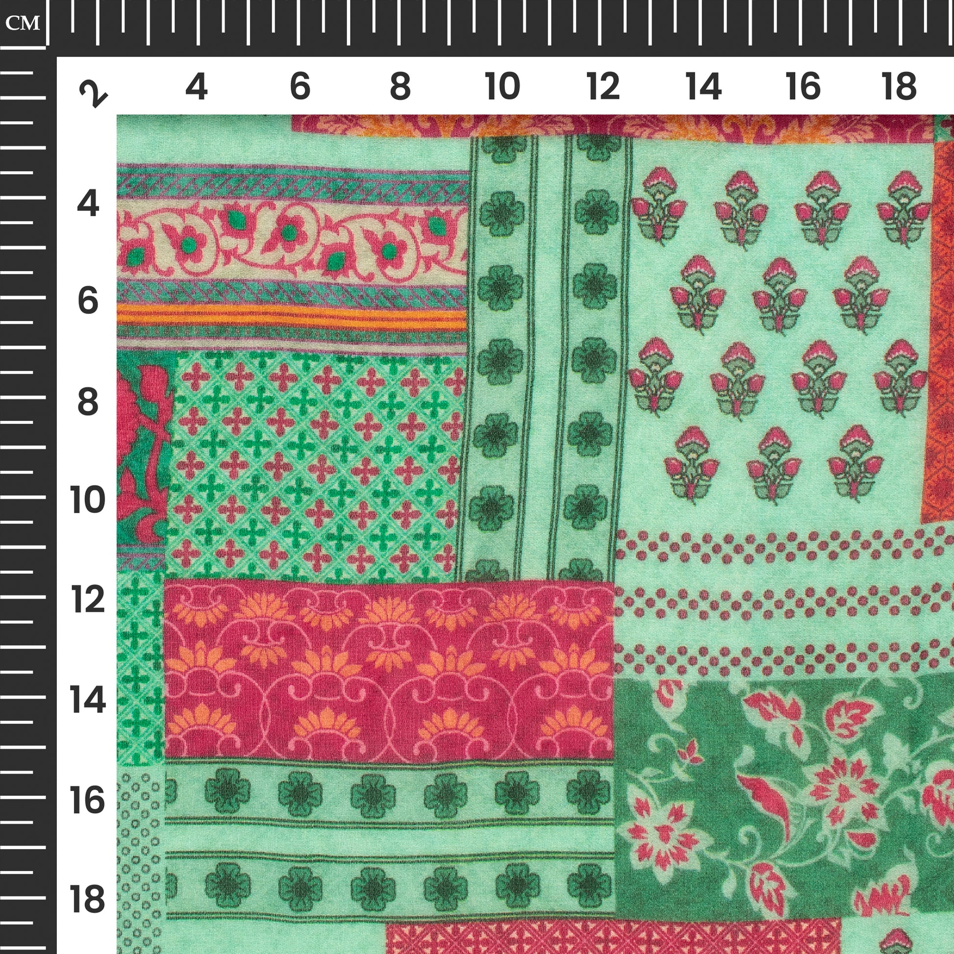 Magenta Pink And Green Patch Digital Print Pure Georgette Fabric