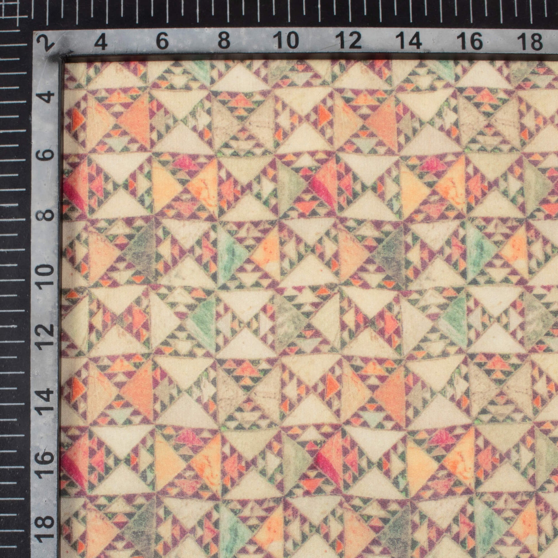 Oat Beige And Red Geometric Pattern Digital Print Pure Georgette Fabric