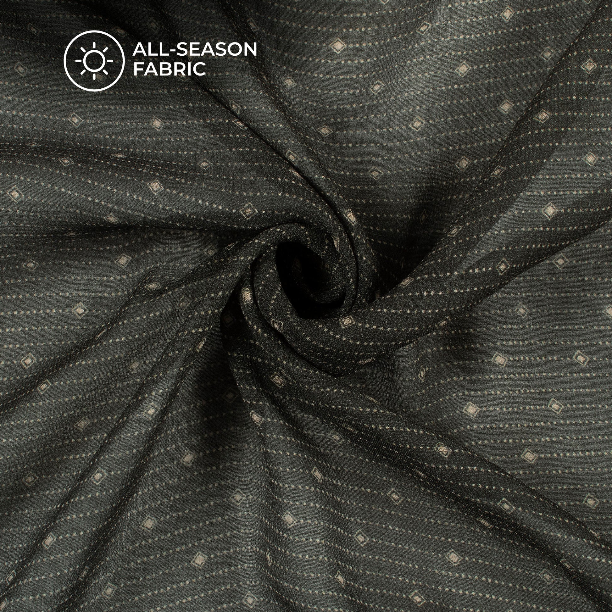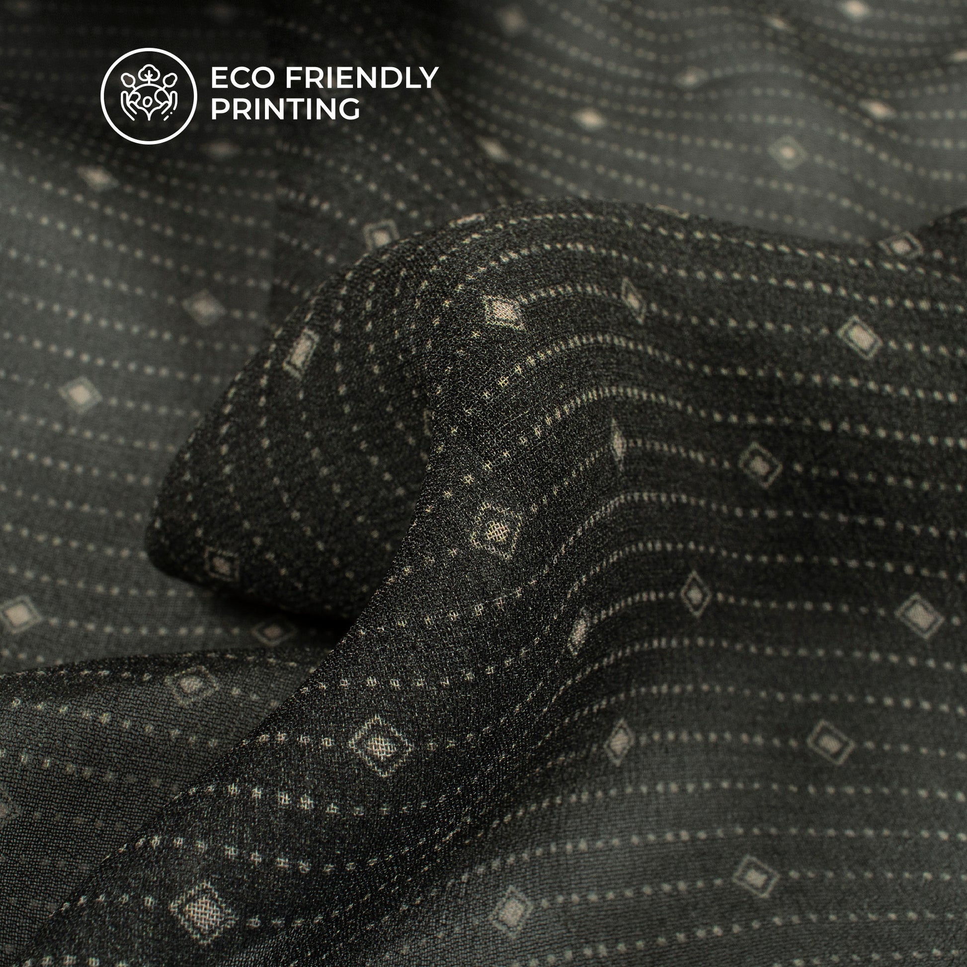 Off-White And Green Stripes Digital Print Pure Georgette Fabric
