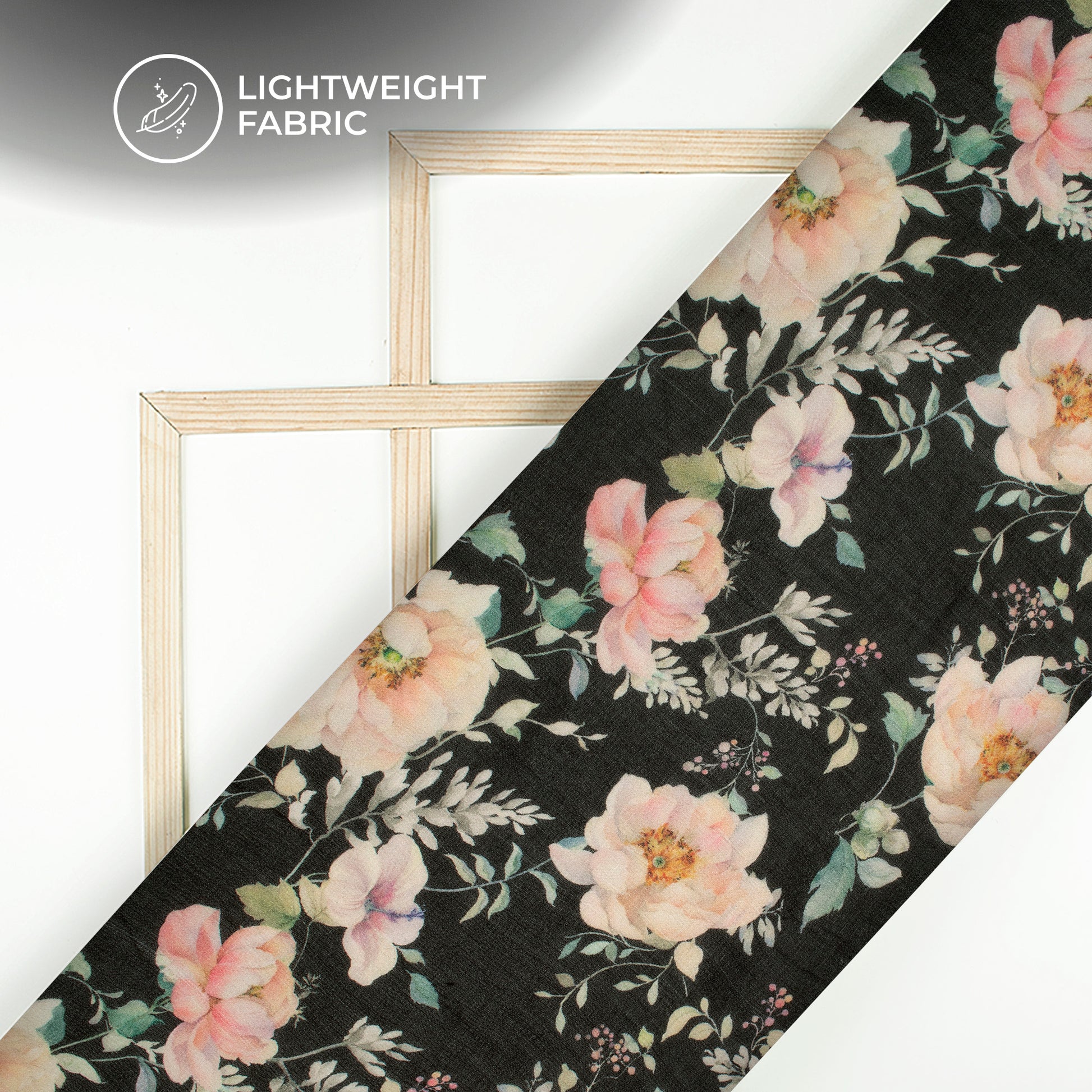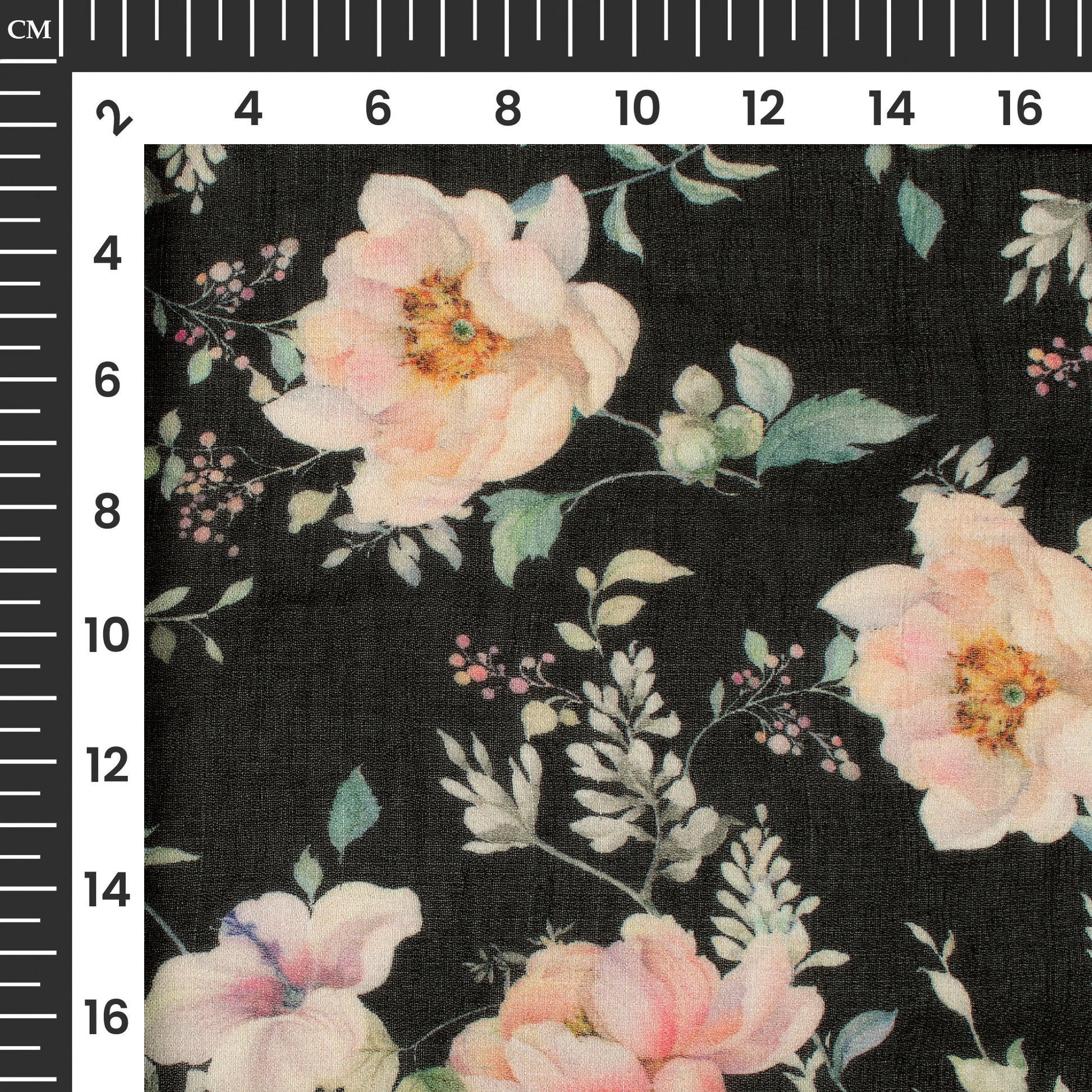 Oyster Beige And Black Floral Digital Print Pure Georgette Fabric