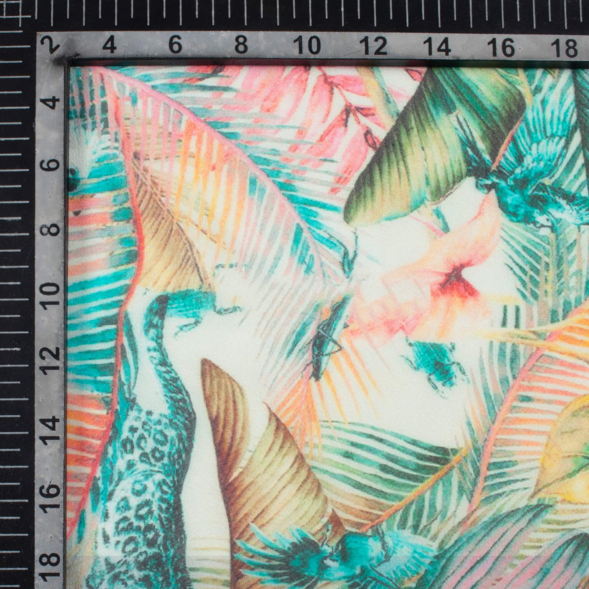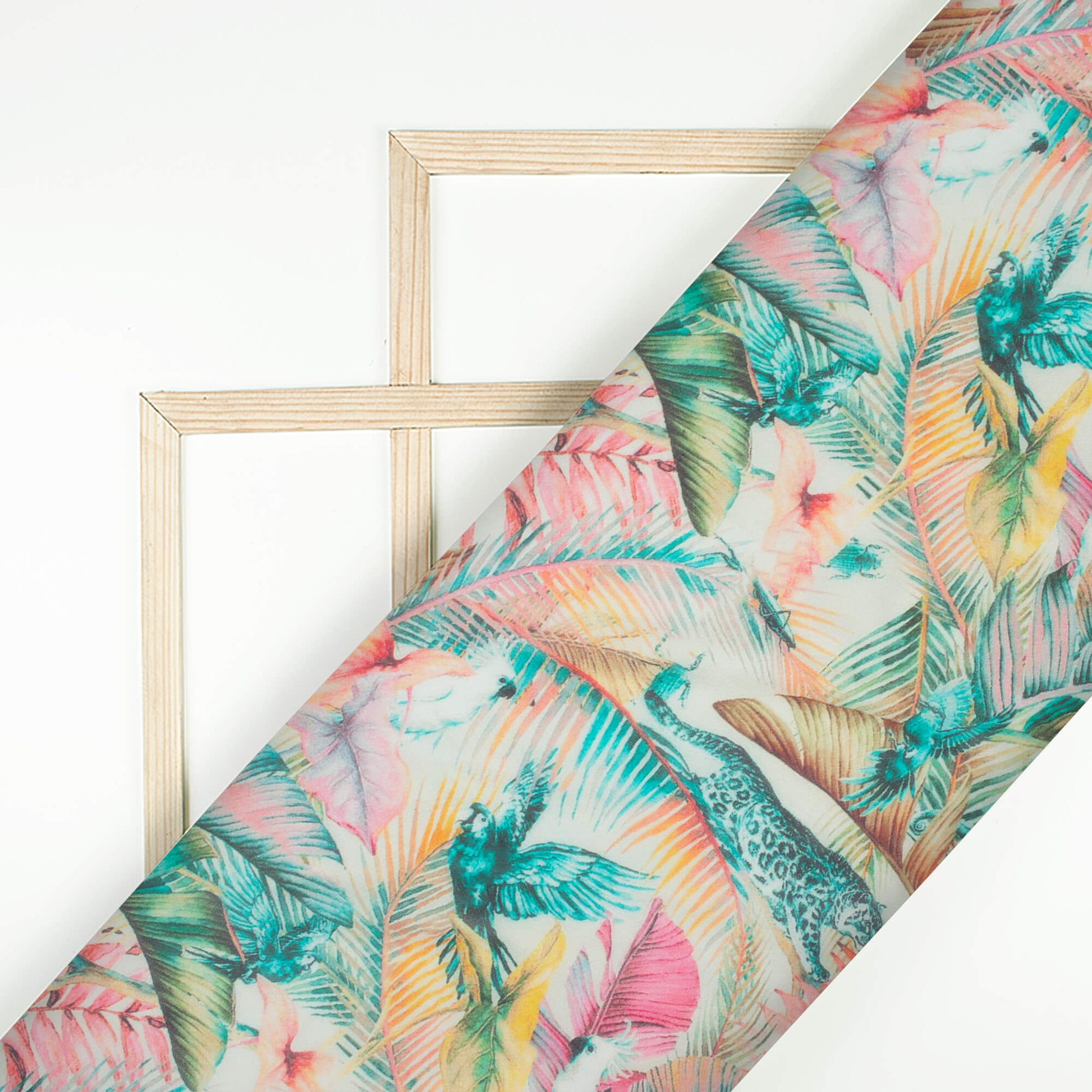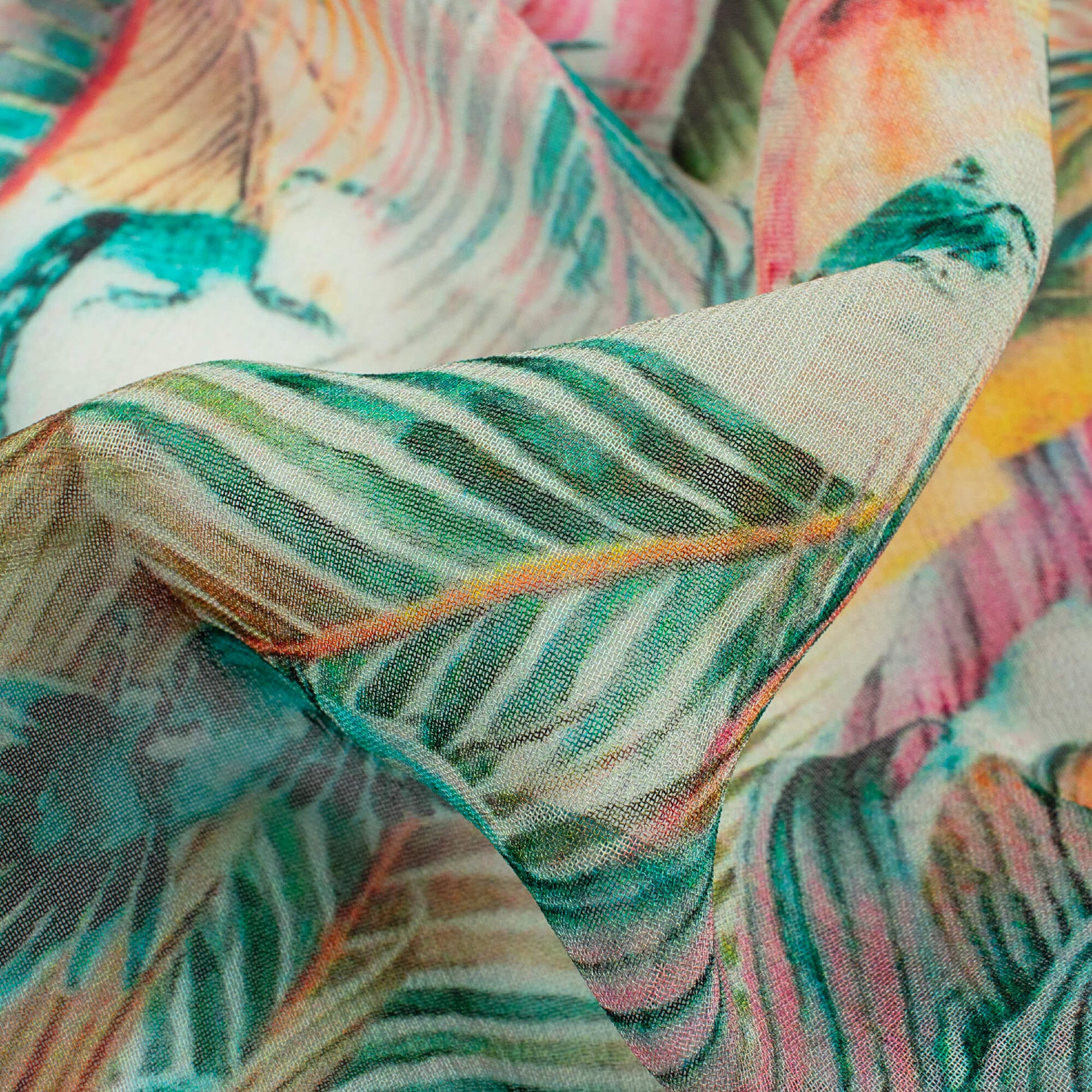 Pine Green And Pink Tropical Pattern Digital Print Pure Georgette Fabric